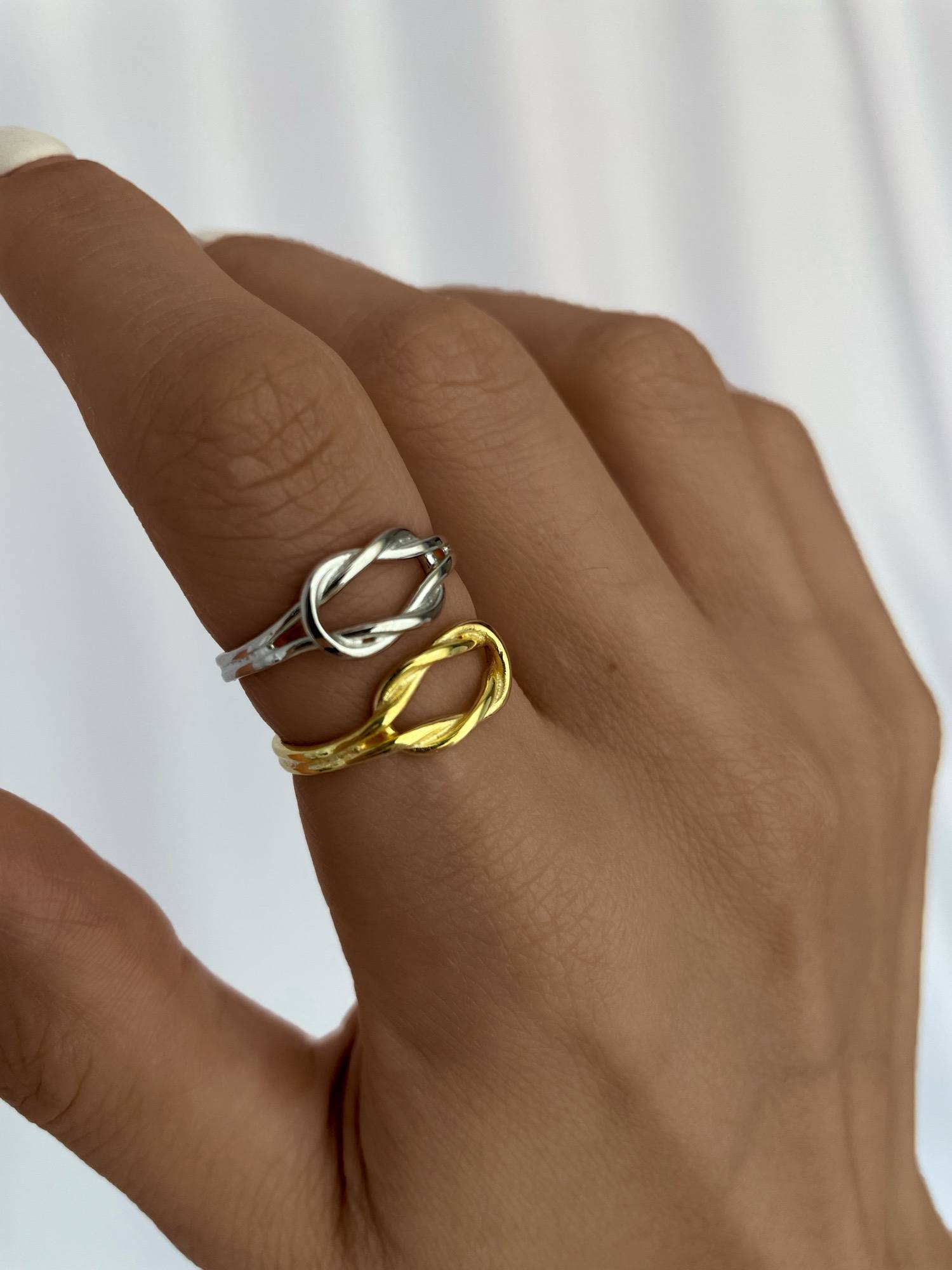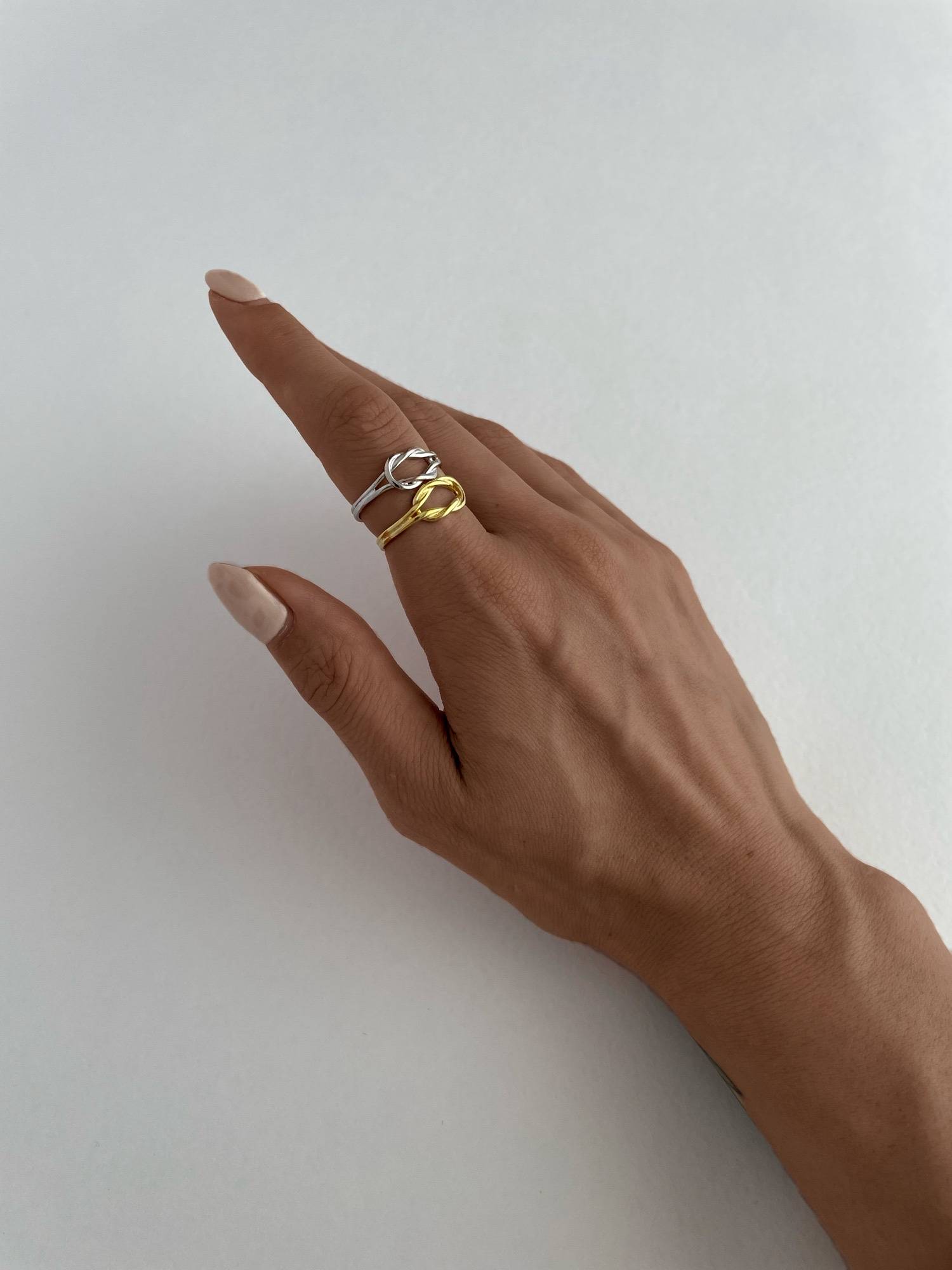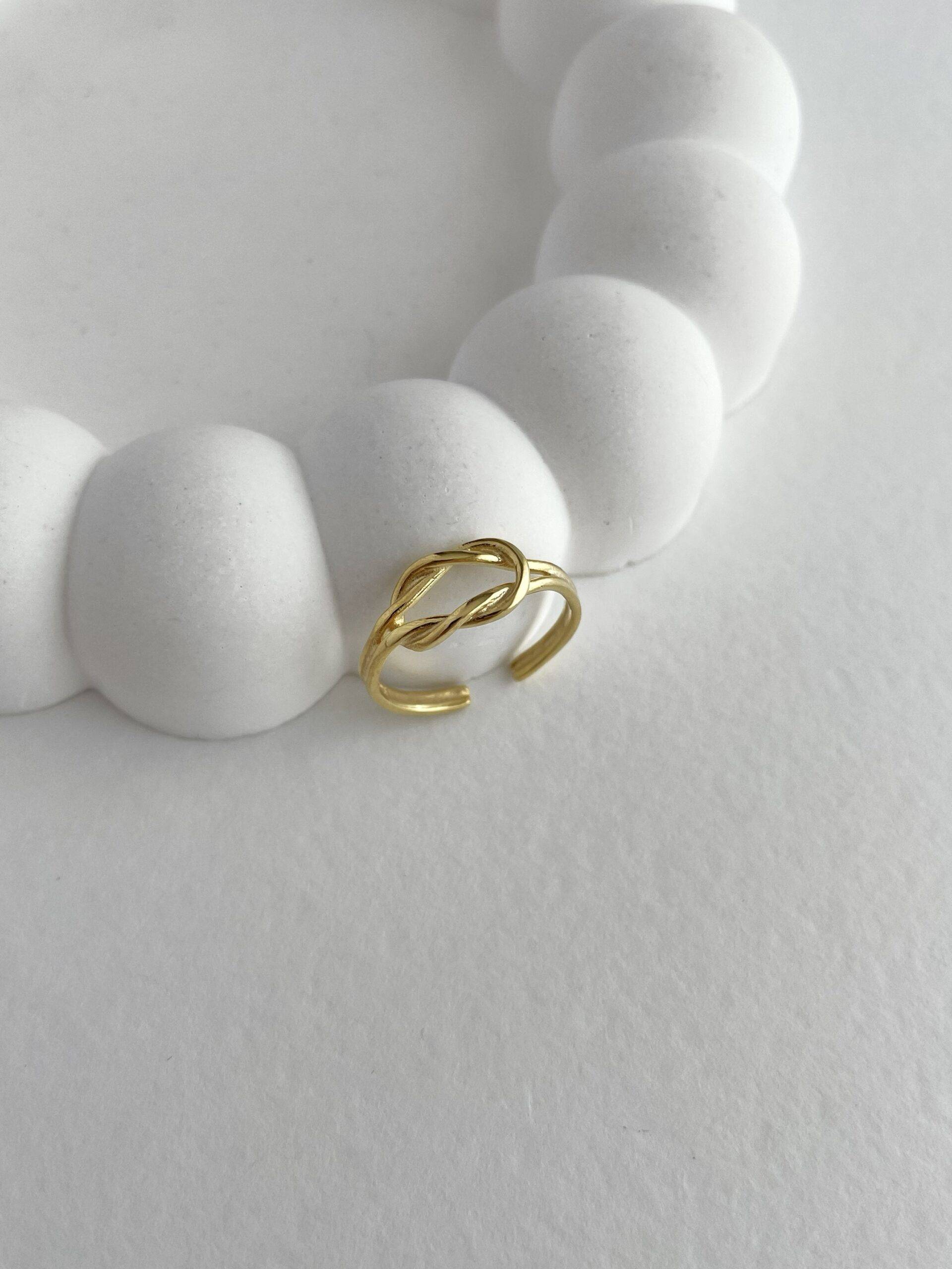 925 Gümüş Düğüm Tasarım Ayarlanabilir Gold Yüzük