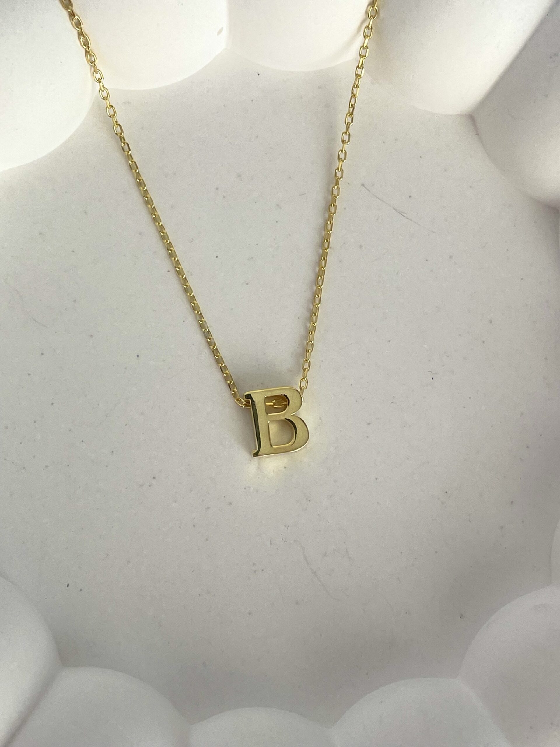 925 Gümüş Minimal Tasarım B Harf Gold Kolye
