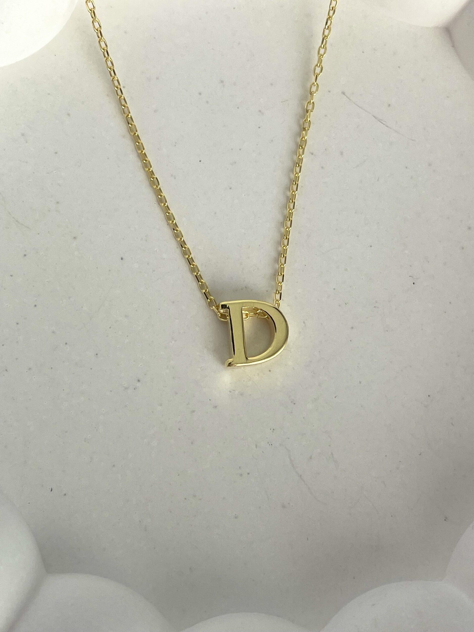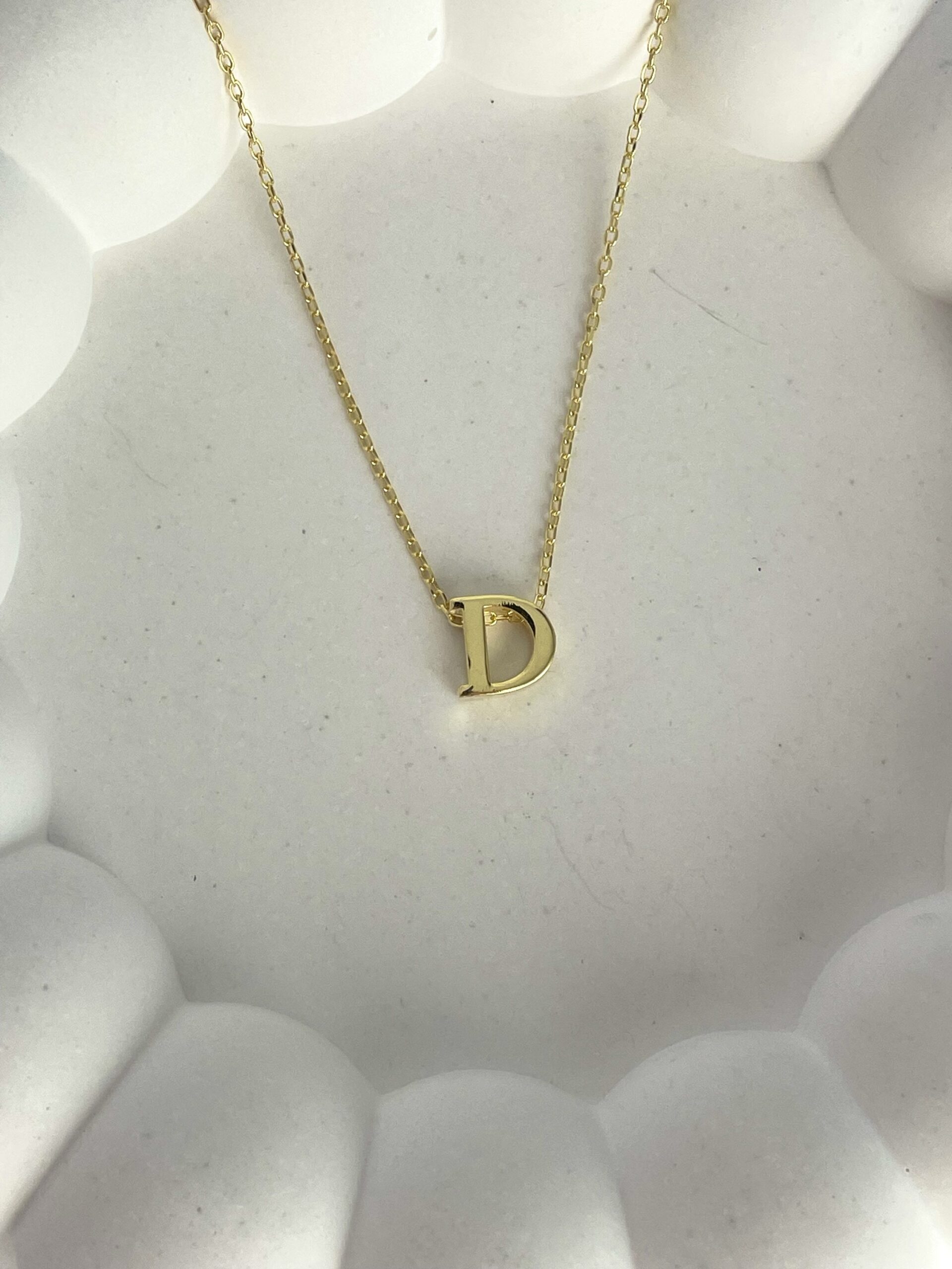 925 Gümüş Minimal Tasarım D Harf Gold Kolye