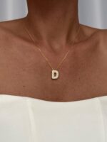 925 Gümüş Zirkon Taşlı D Harf Gold Kolye