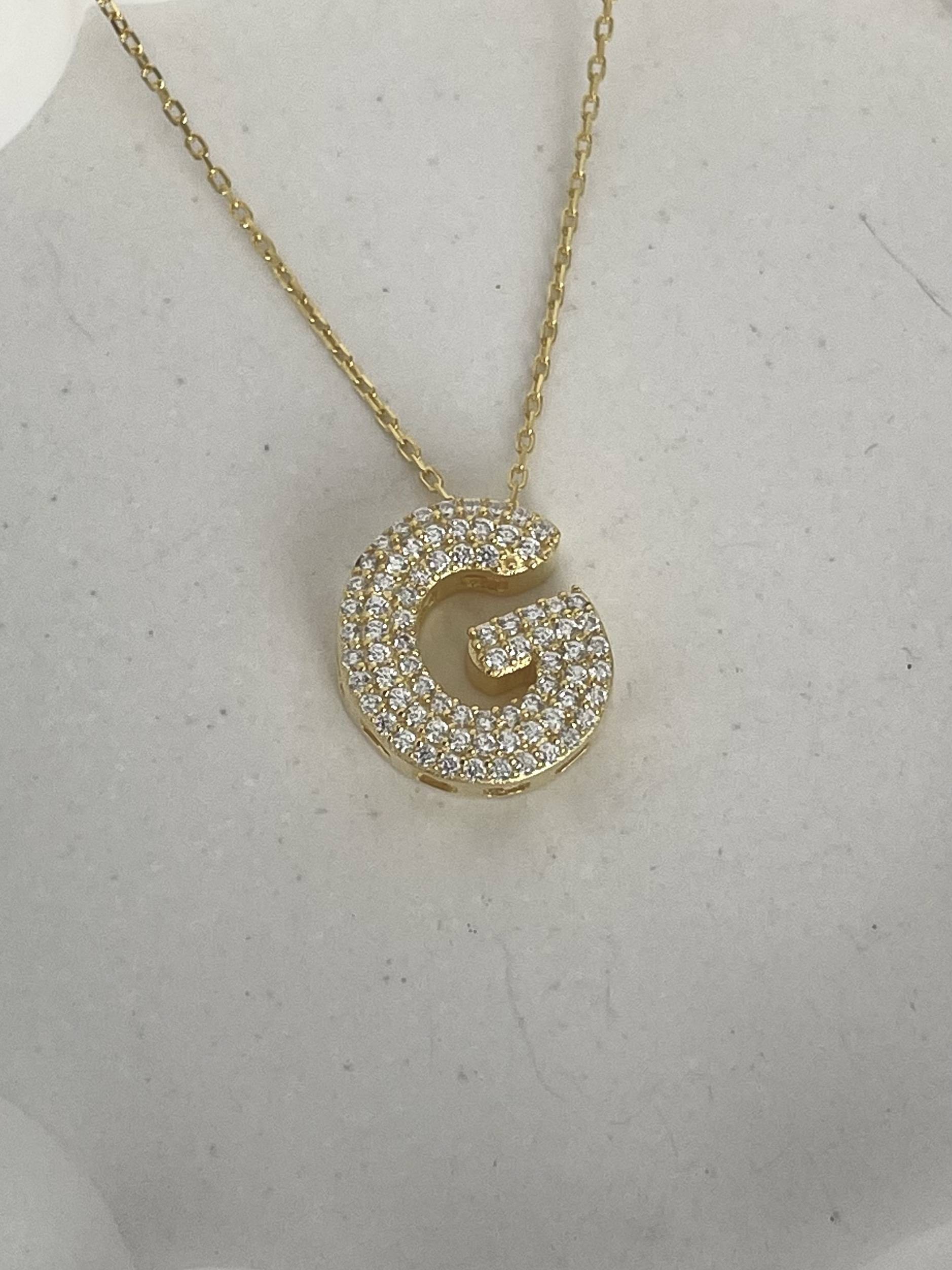 925 Gümüş Zirkon Taşlı G Harf Gold Kolye