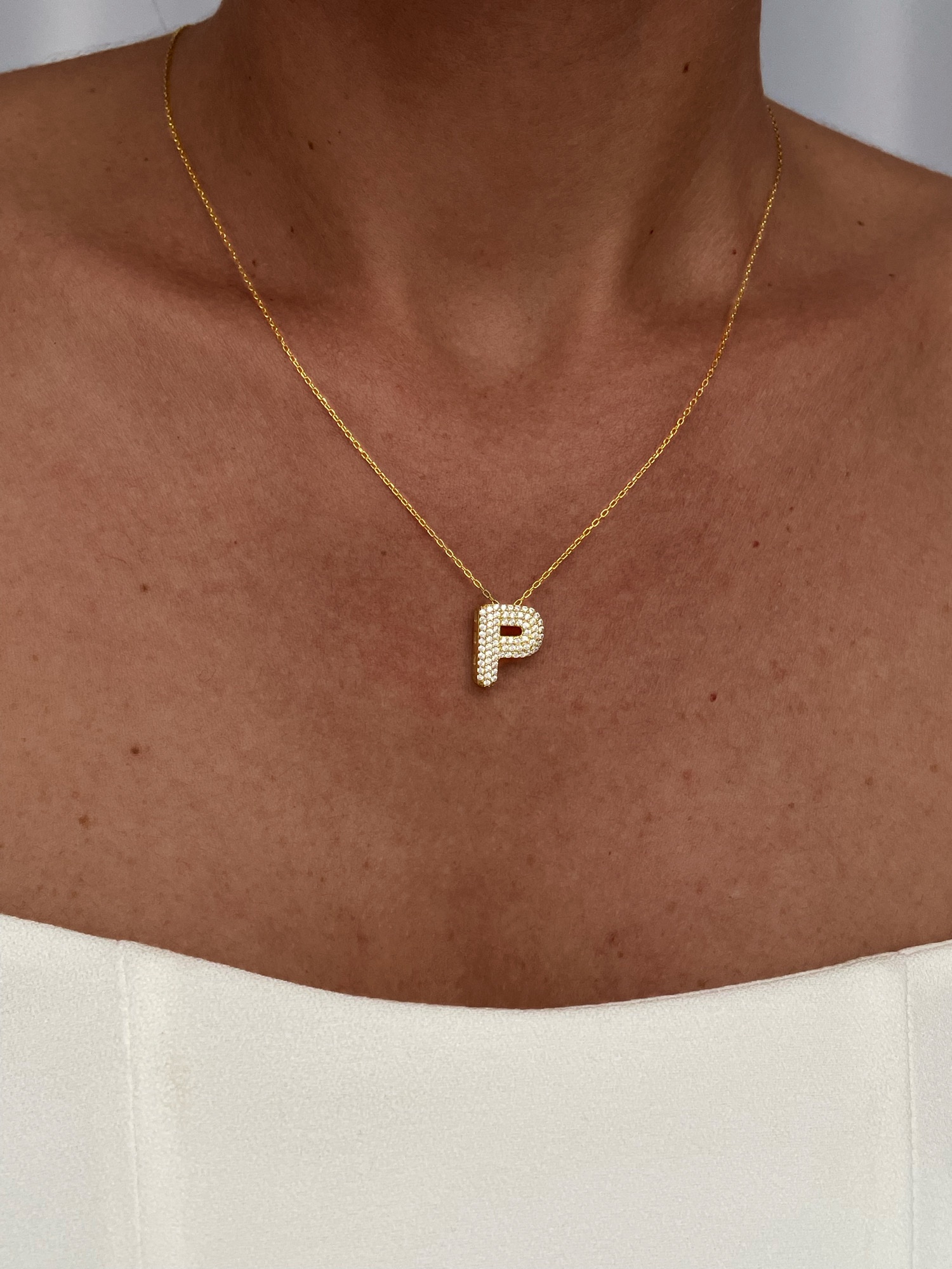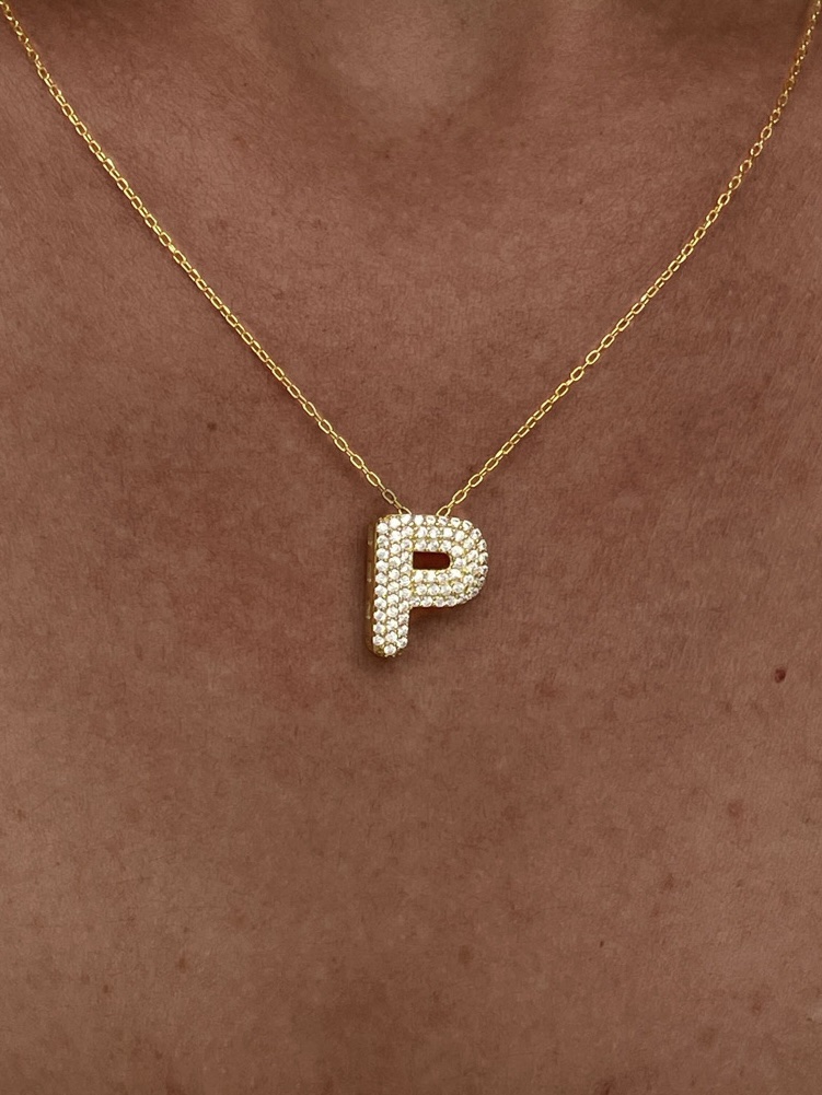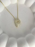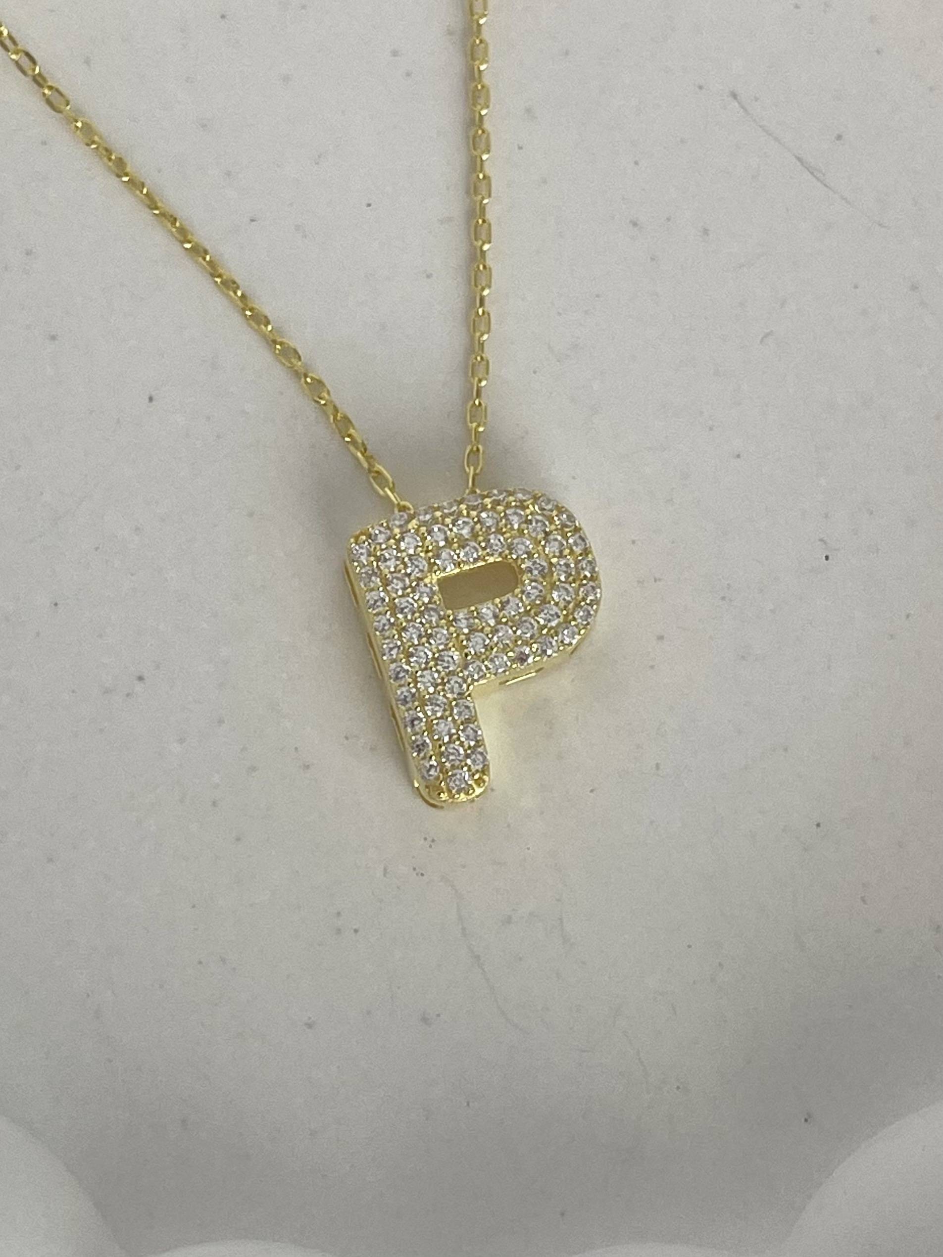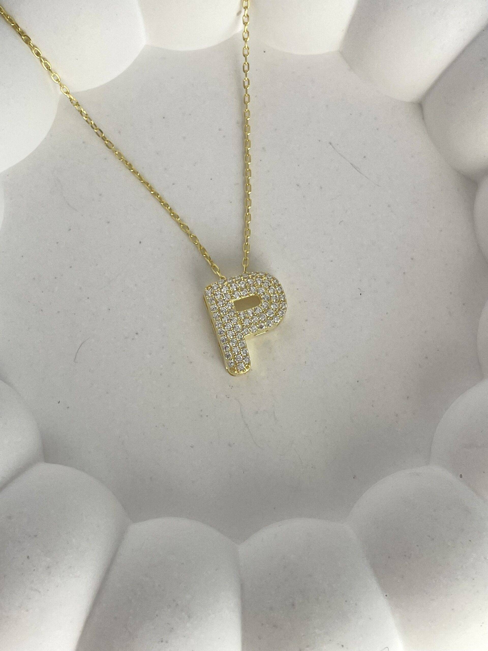 925 Gümüş Zirkon Taşlı P Harf Gold Kolye