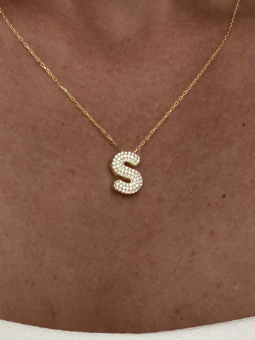 925 Gümüş Zirkon Taşlı S Harf Gold Kolye