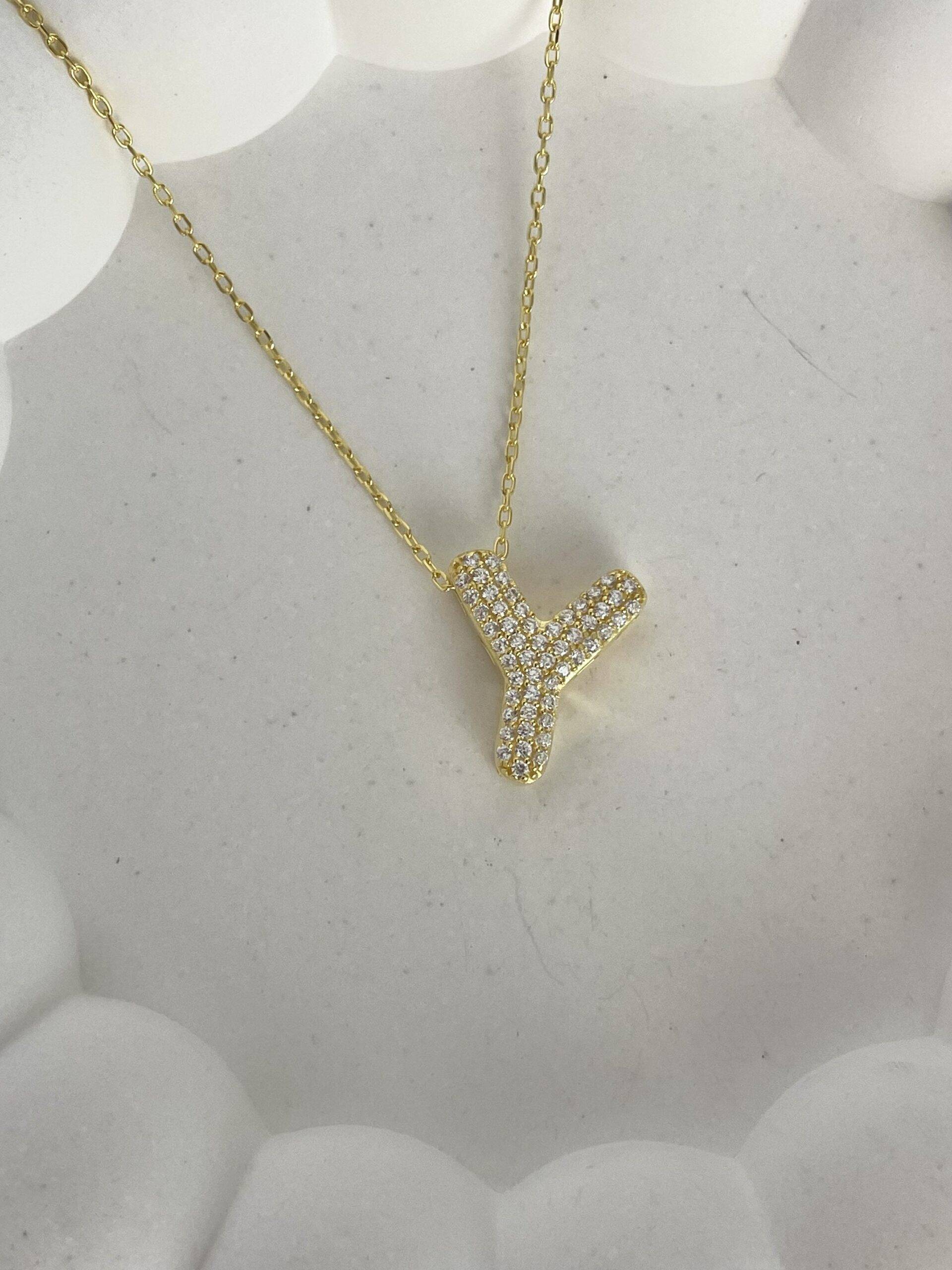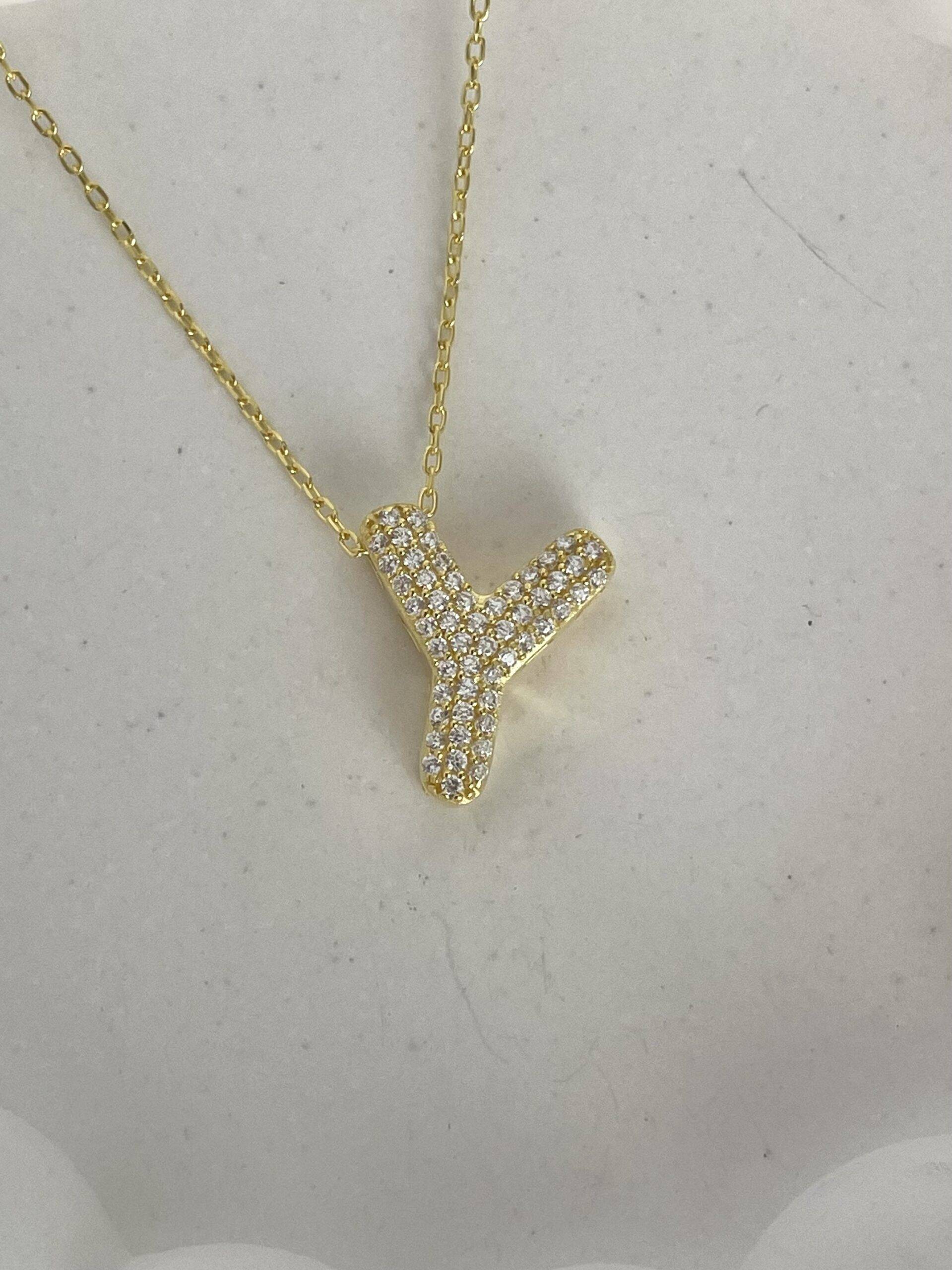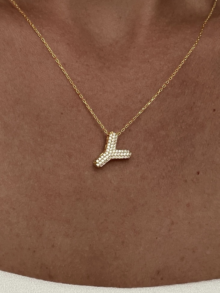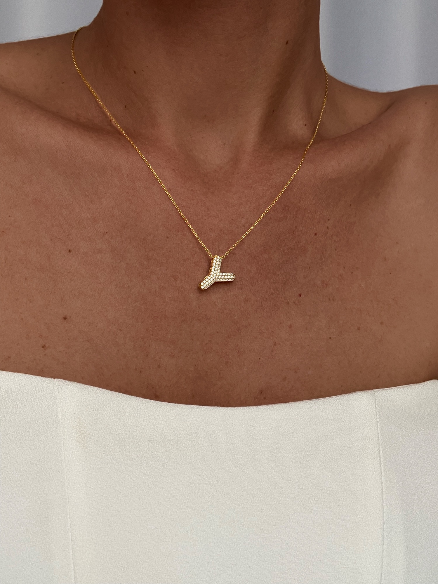 925 Gümüş Zirkon Taşlı Y Harf Gold Kolye