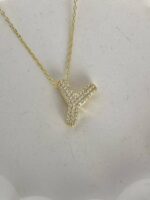 925 Gümüş Zirkon Taşlı V Harf Gold Kolye