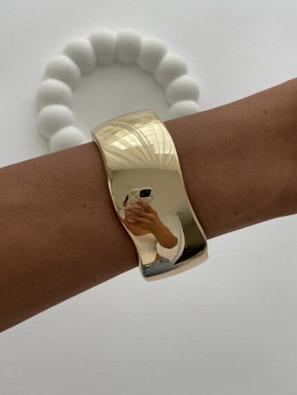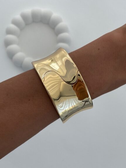 Özel Seri Kıvrım Detay Gold Kelepçe Bileklik