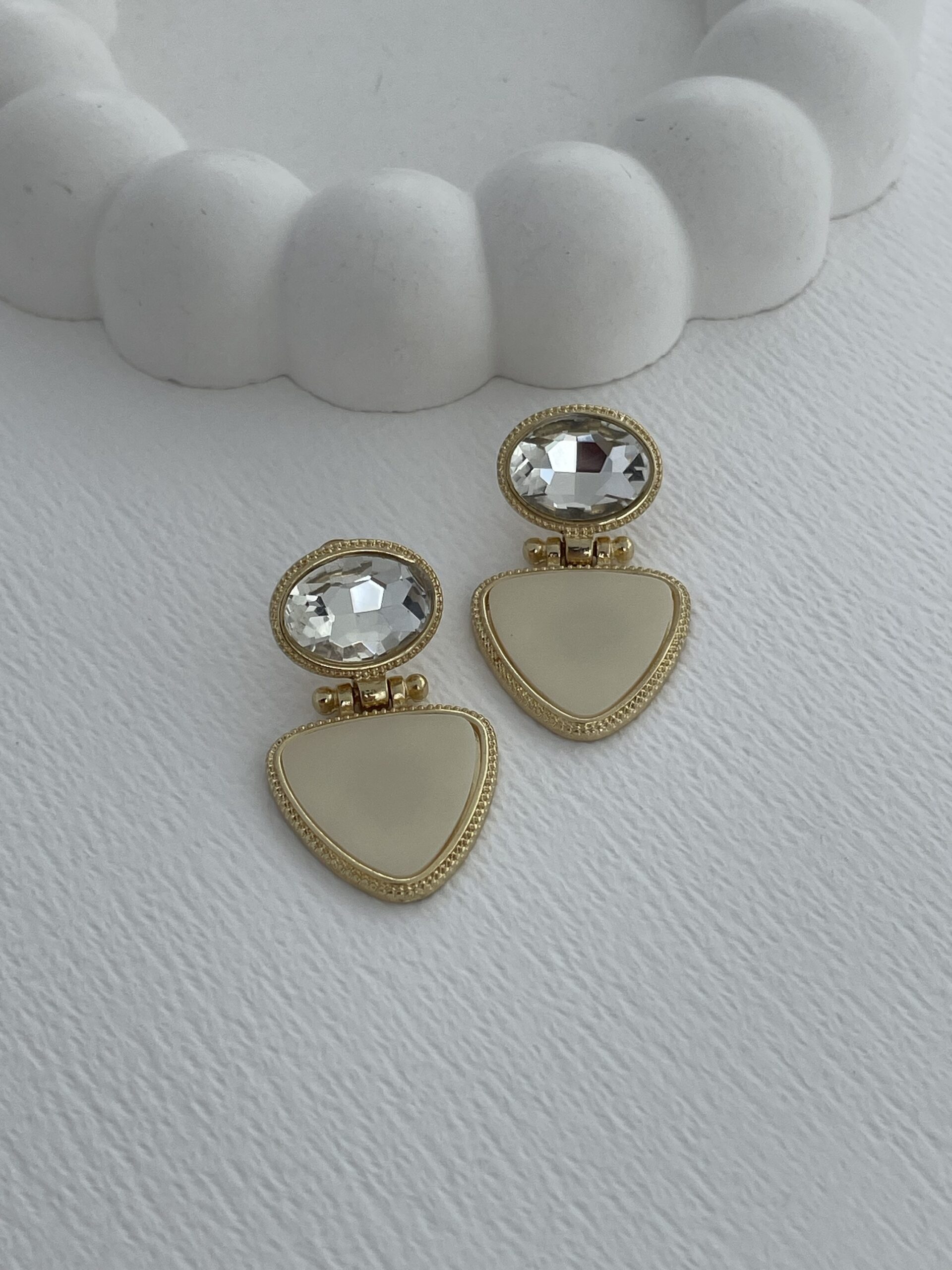 Özel Seri Krem Kemik Detay Zirkon Taş Damla Tasarım Gold Küpe
