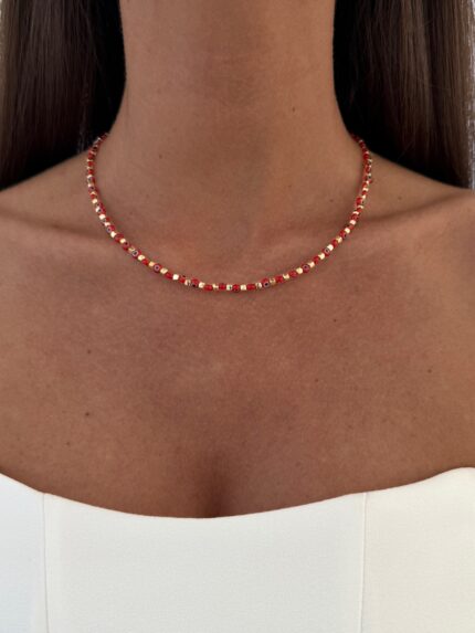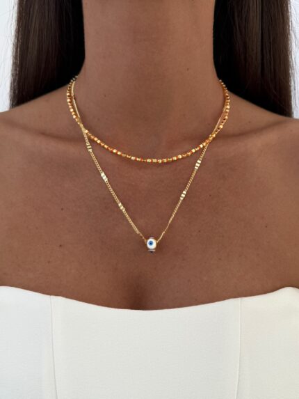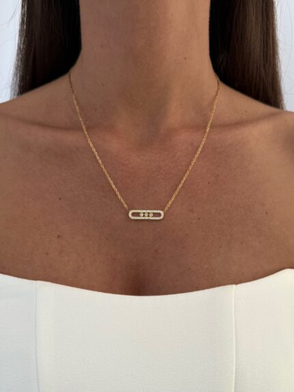 NS-Tel Görünümlü Büyük Tek Taş Detay Gold İnci Choker Kolye