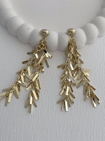 Özel Seri Sallantılı Saçak Tasarım Gold Küpe
