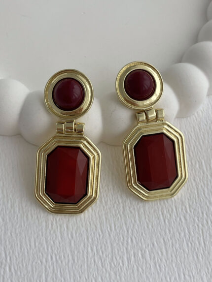 Özel Seri Bordo Kemik Üçlü Oval Tasarım Gold Küpe