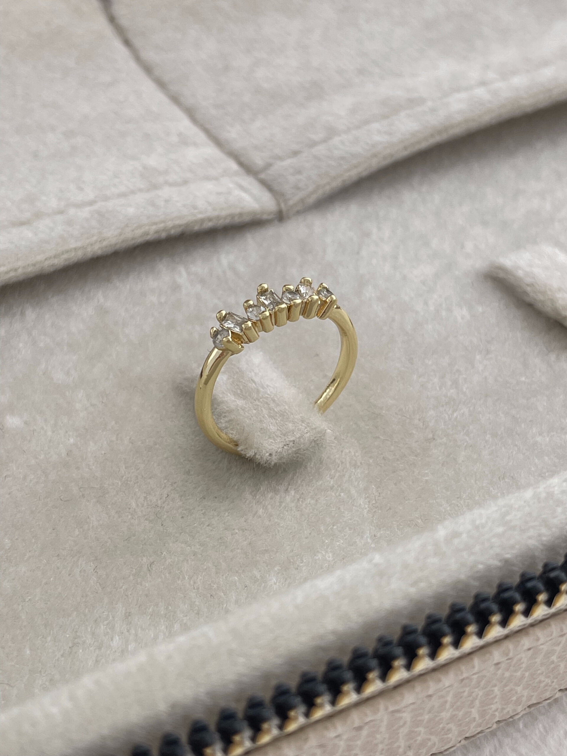 Özel Seri Baget Taş Tasarım Ayarlanabilir Gold Yüzük