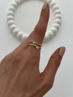 Özel Seri Zirkon Taşlı Fiyonk Tasarım Ayarlanabilir Gold Yüzük