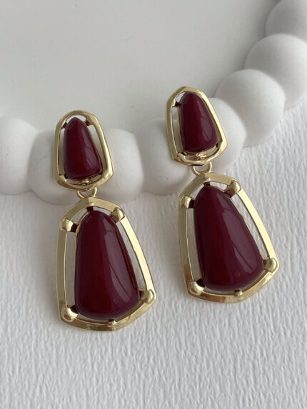Özel Seri Kahverengi Akrilik Taş Desenli İkili Yuvarlak Tasarım Gold Küpe
