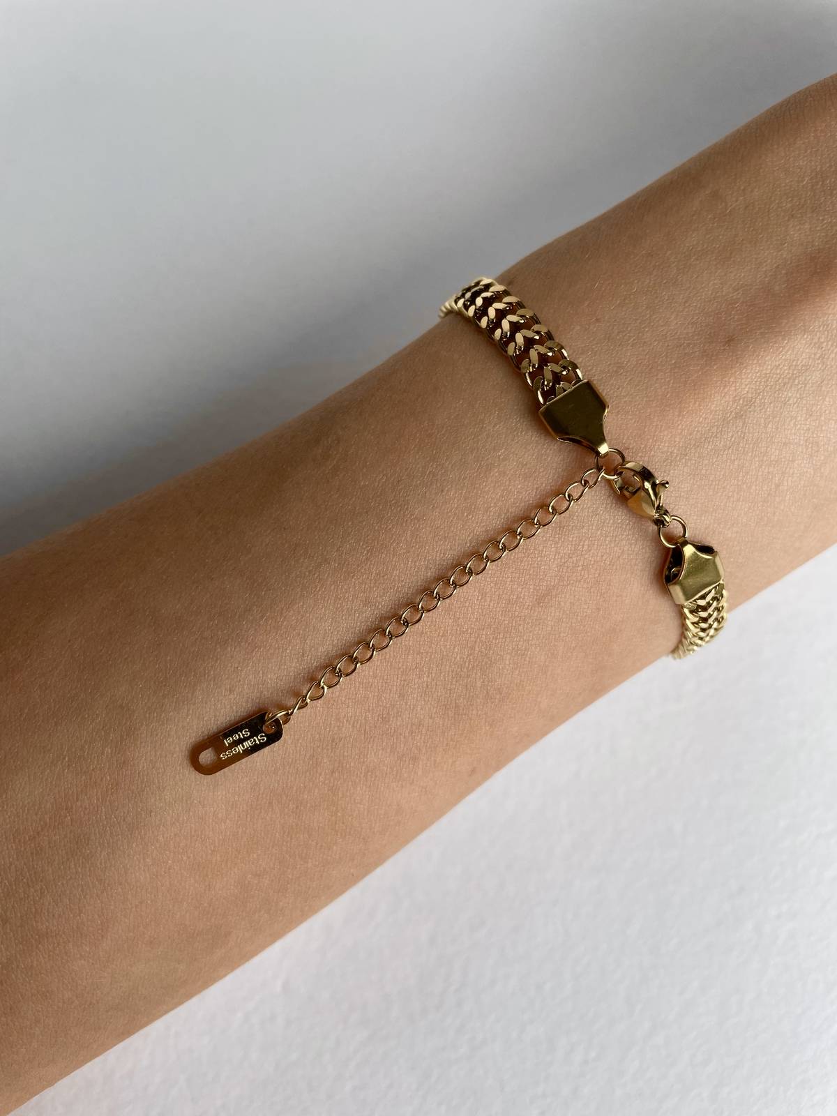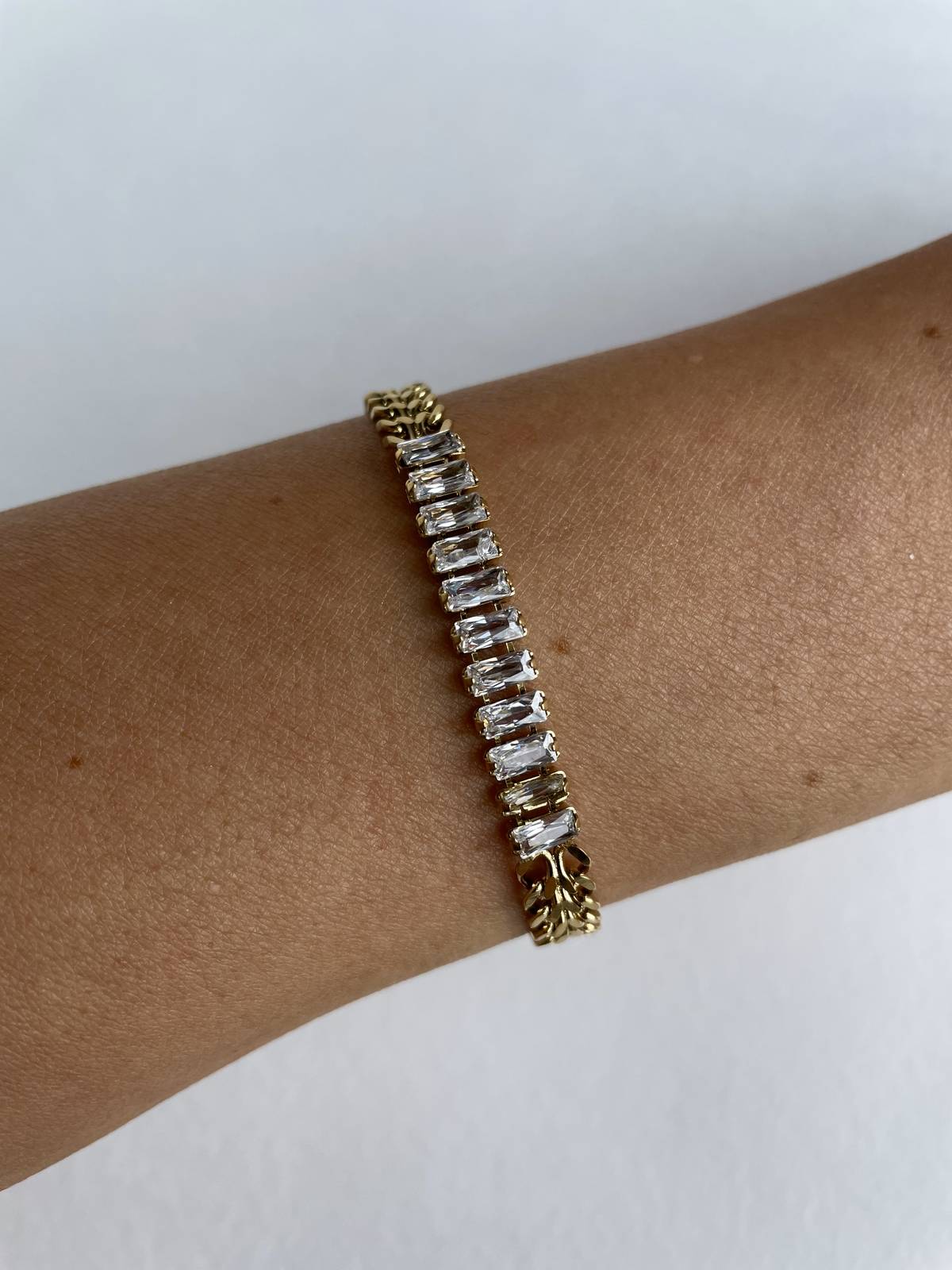 Baget Taş Detaylı Gold Çelik Zincir Bileklik