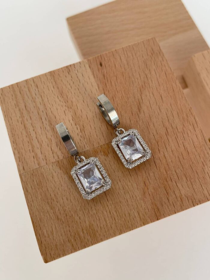 Baget ve Zirkon Taşlı Sallantılı Çelik Gümüş Küpe