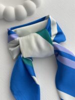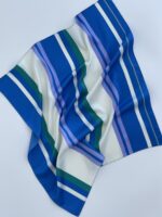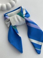 Beyaz Lacivert Çizgi Desen Saten Fular