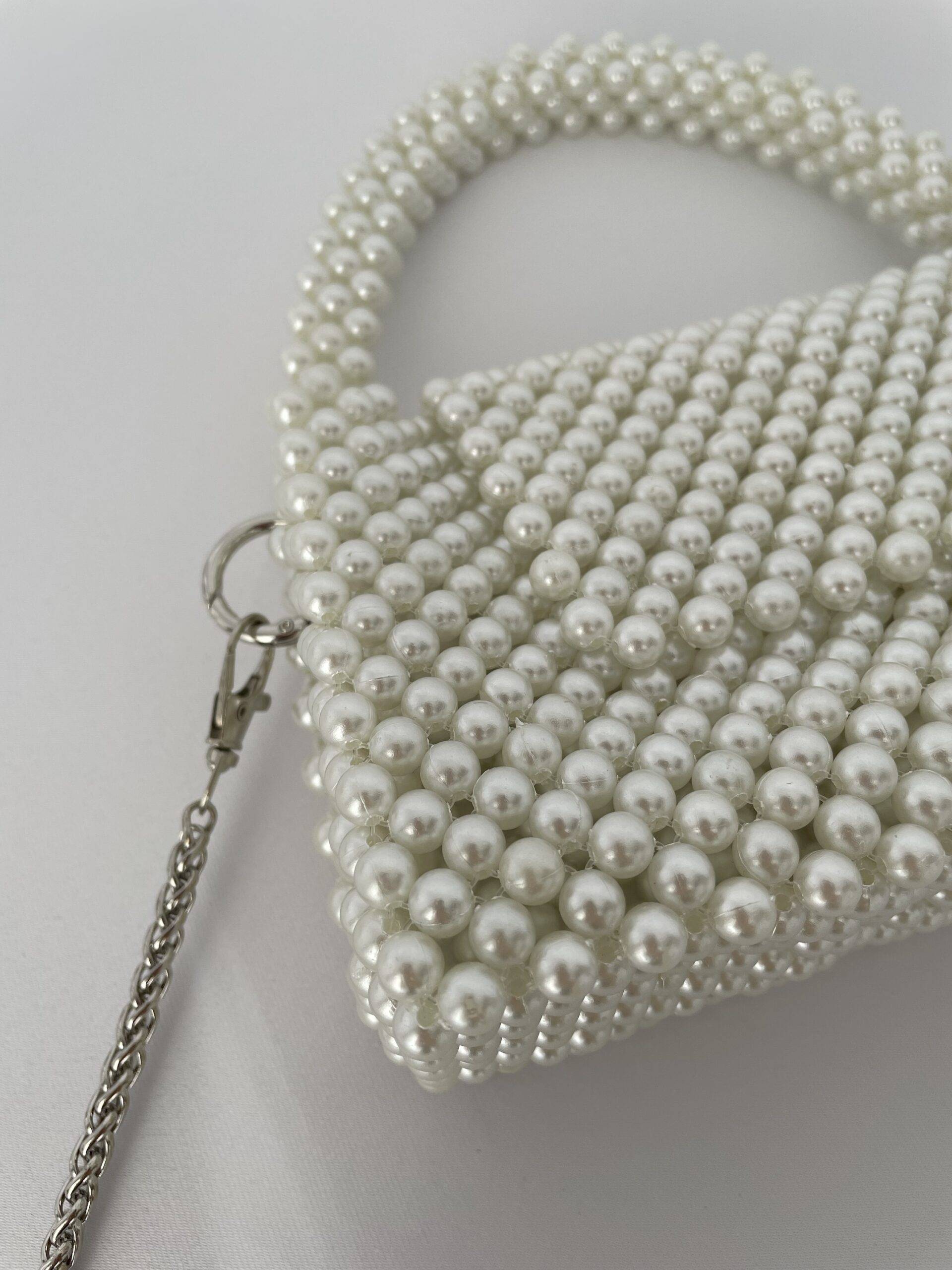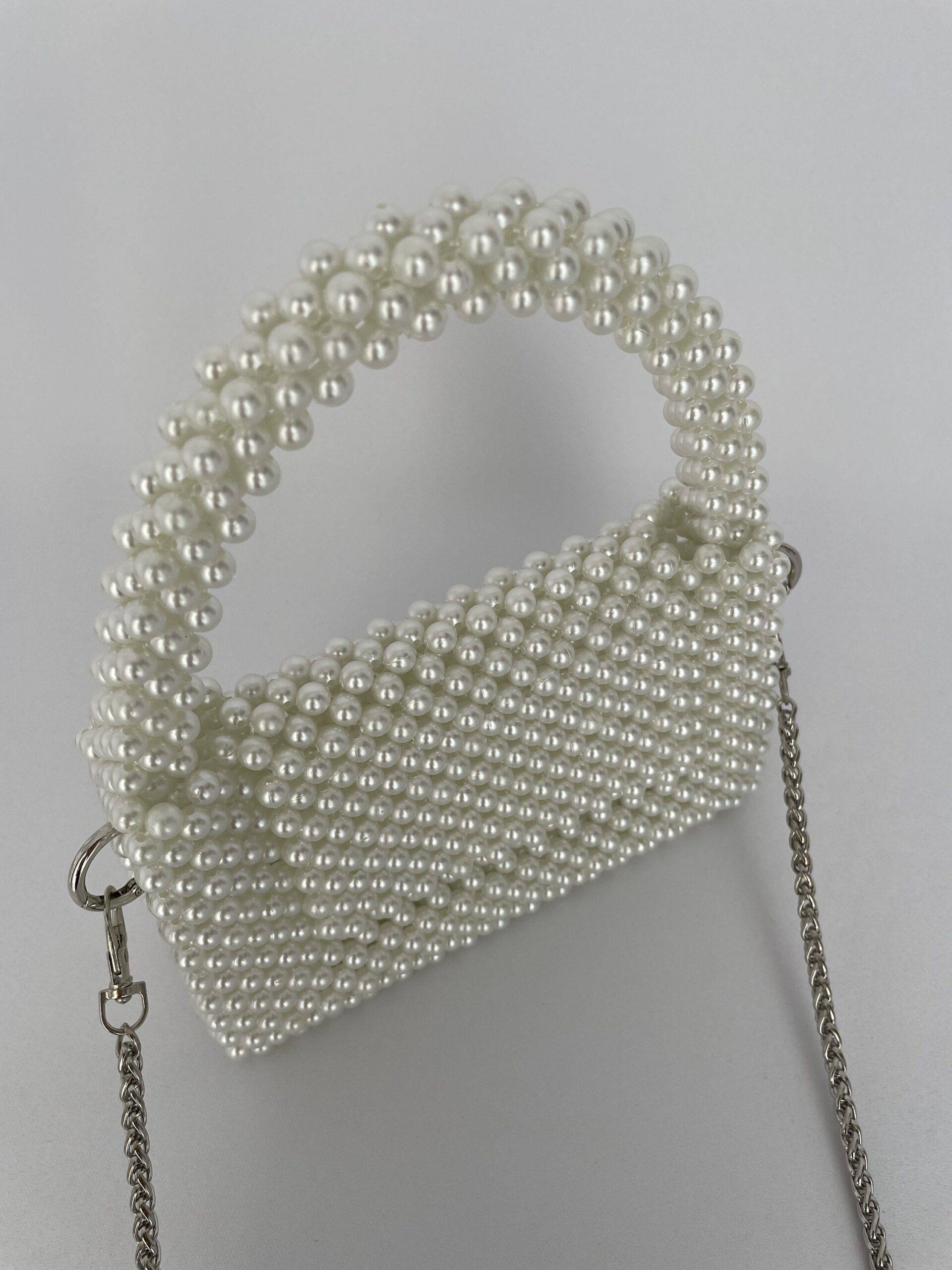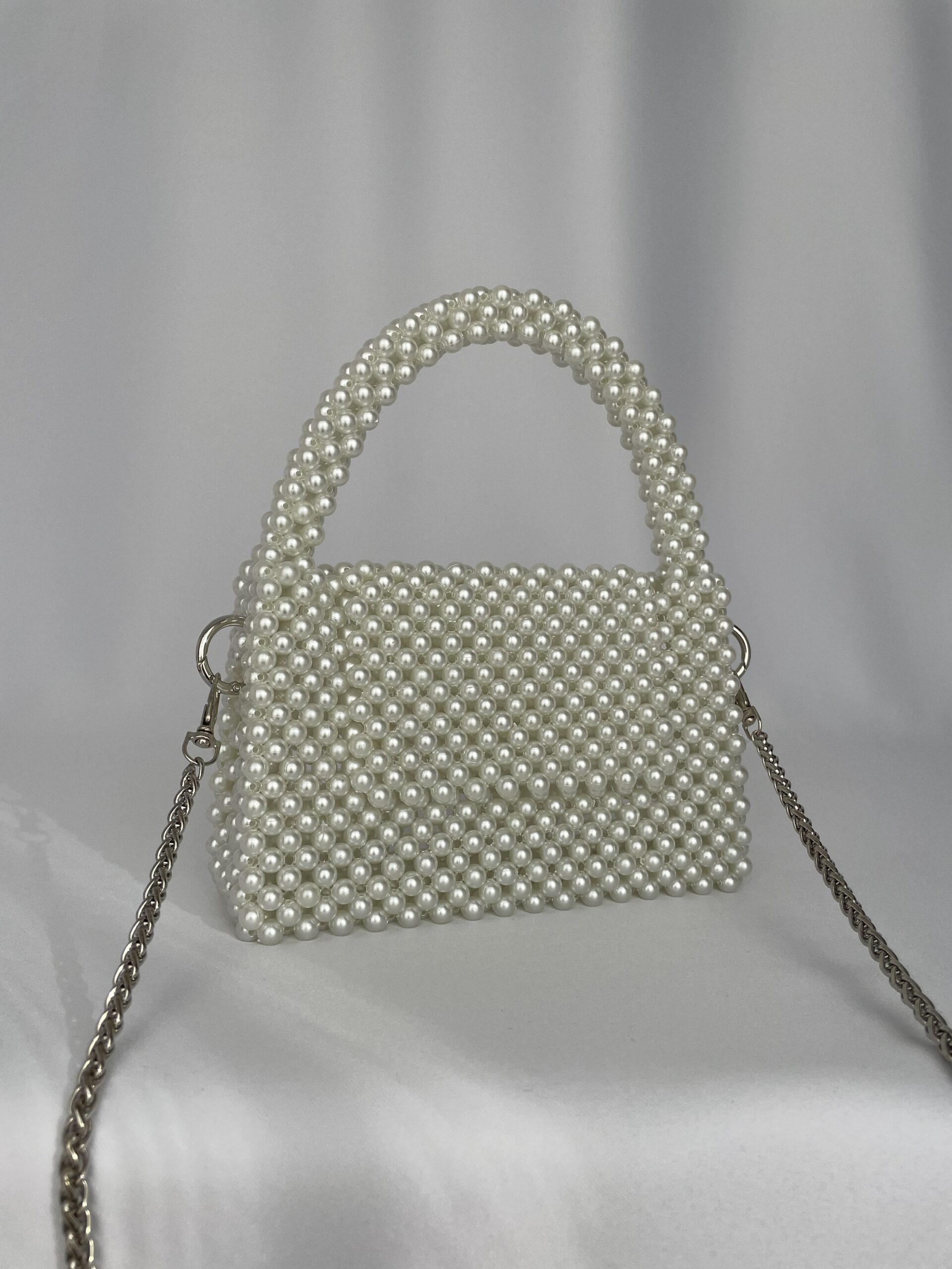 LP Özel Seri Beyaz Lux İnci Midi Çanta