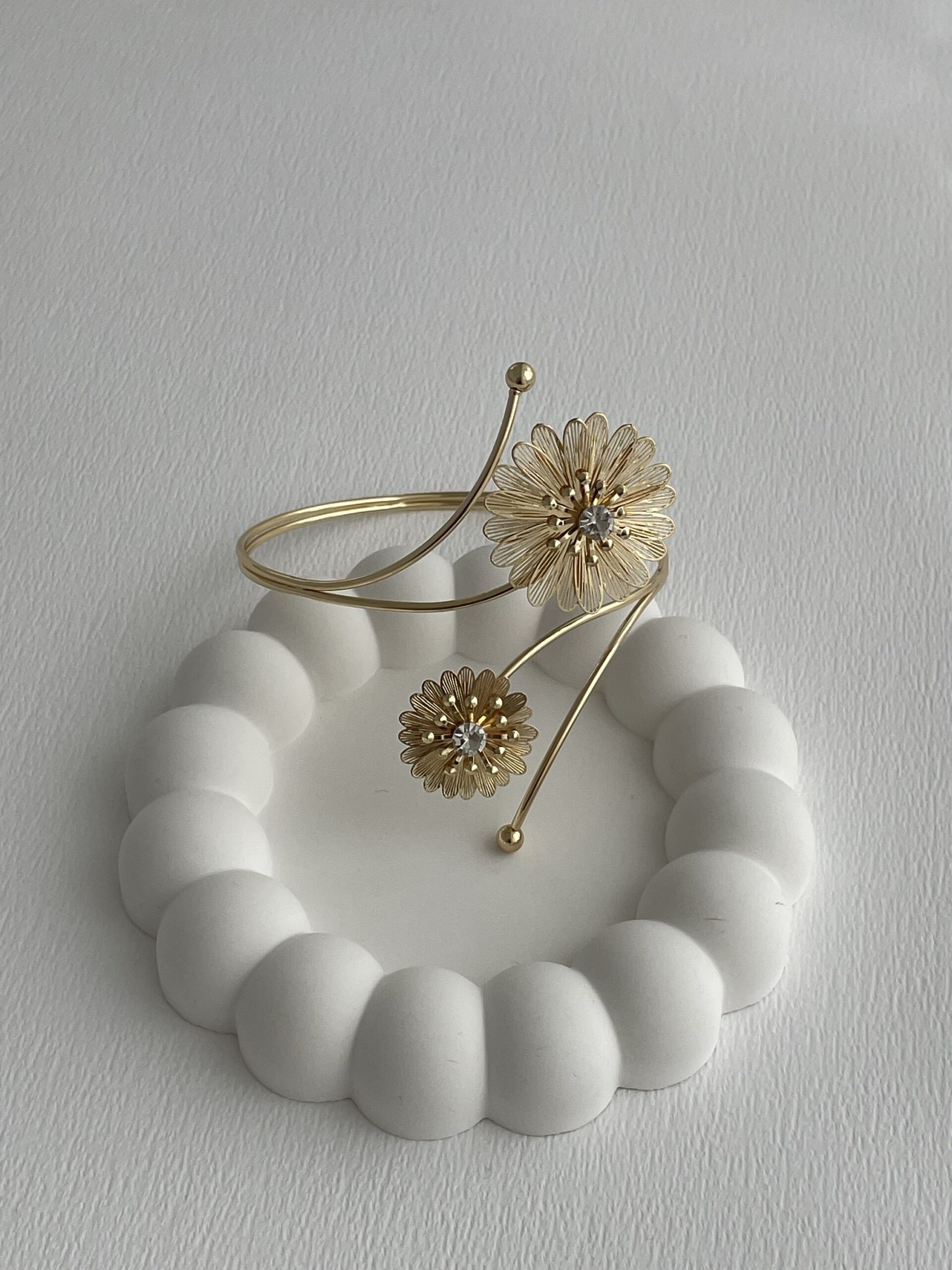 Özel Seri Taşlı İkili Çiçek Tasarım Gold Pazu Bilekliği