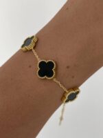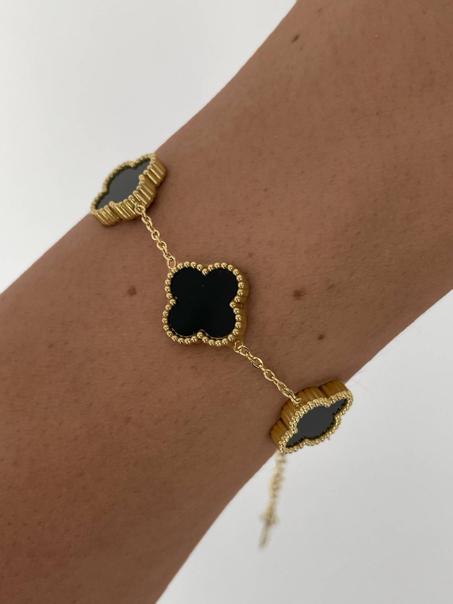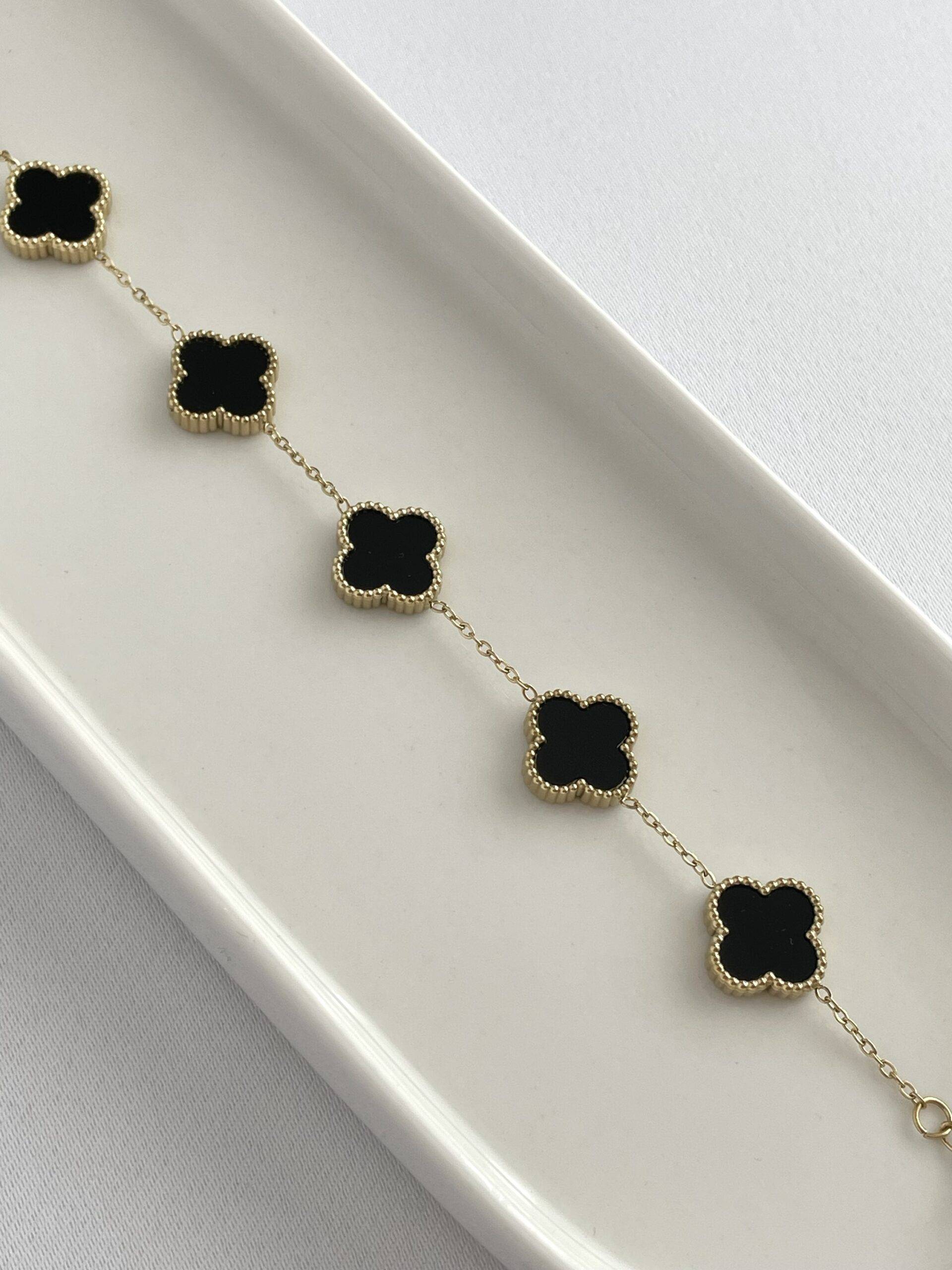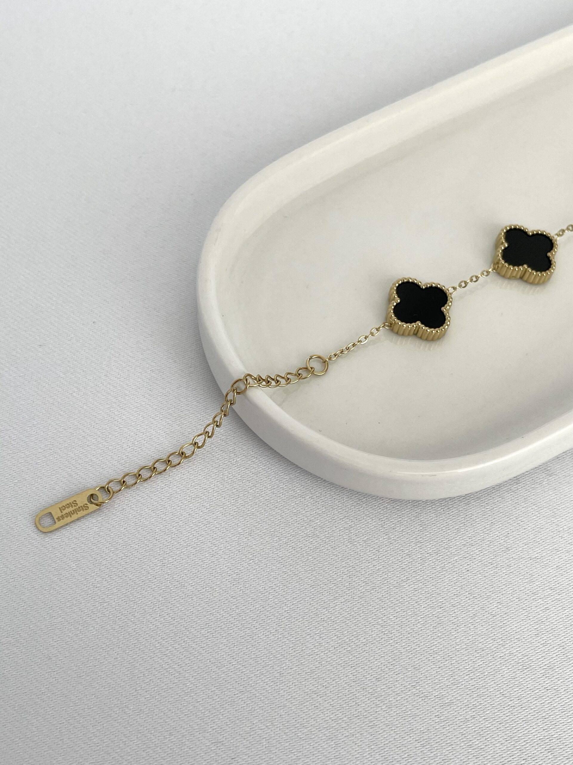 Çelik Beşli Yonca Tasarım Çift Taraflı Siyah Gold Bileklik