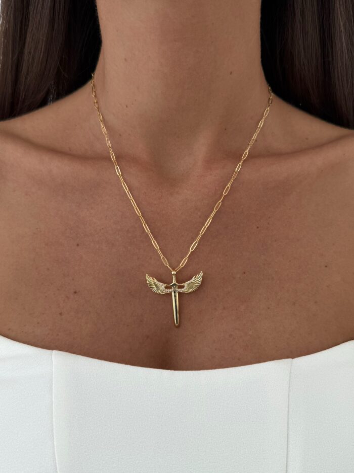 Çelik Anka Kuşu Tasarım Figaro Zincir Gold Kolye