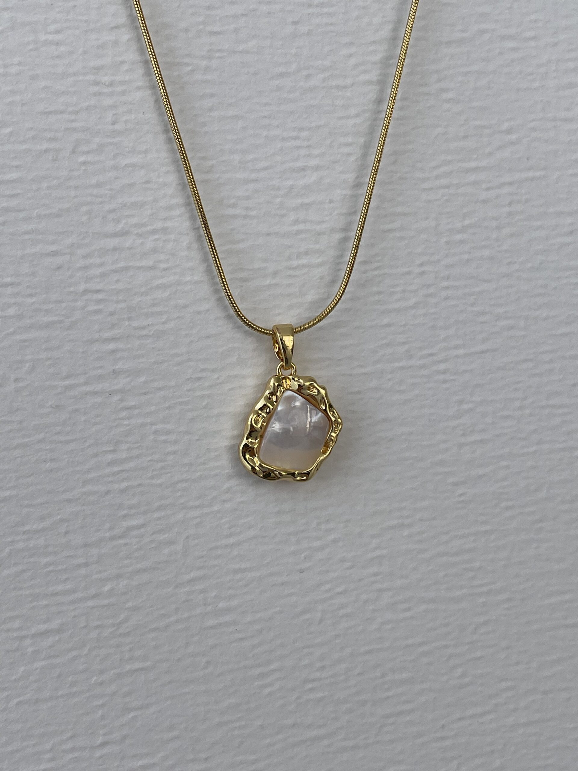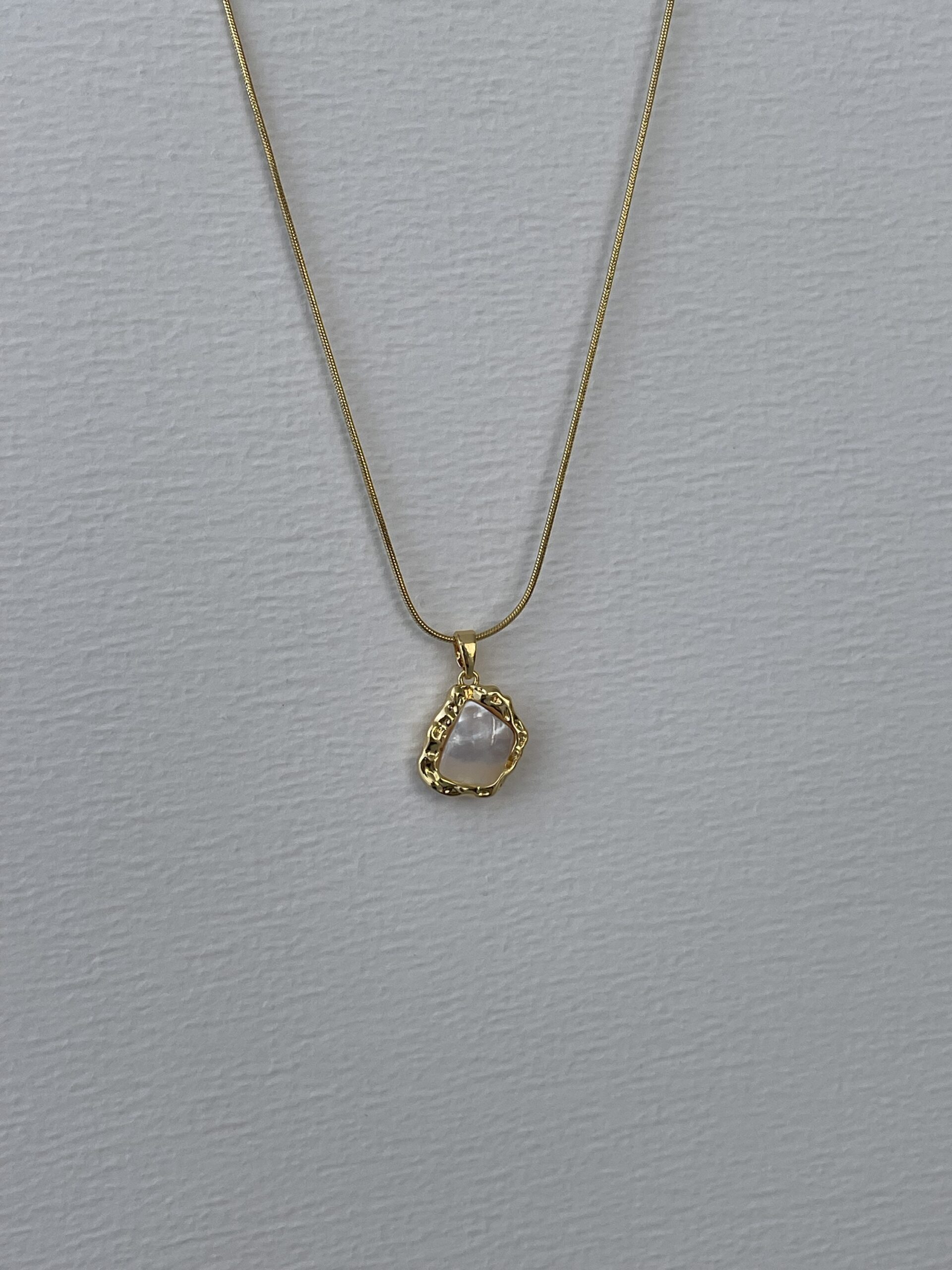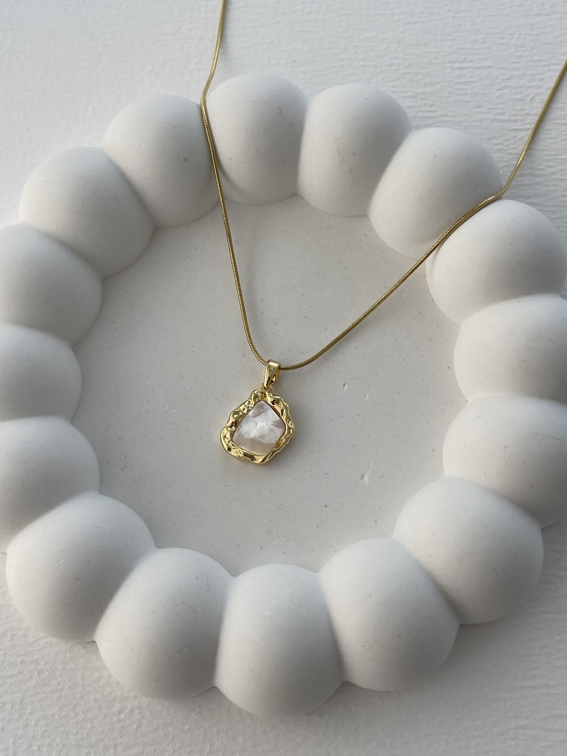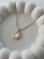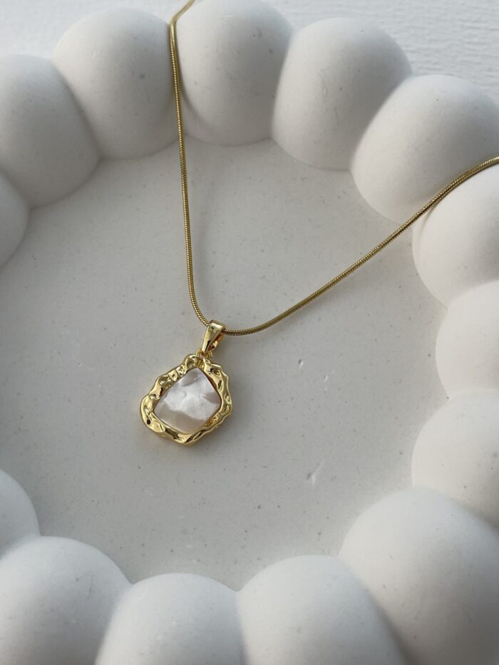 Çelik Asimetrik Desen Sedefli Gold Kolye