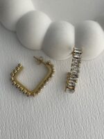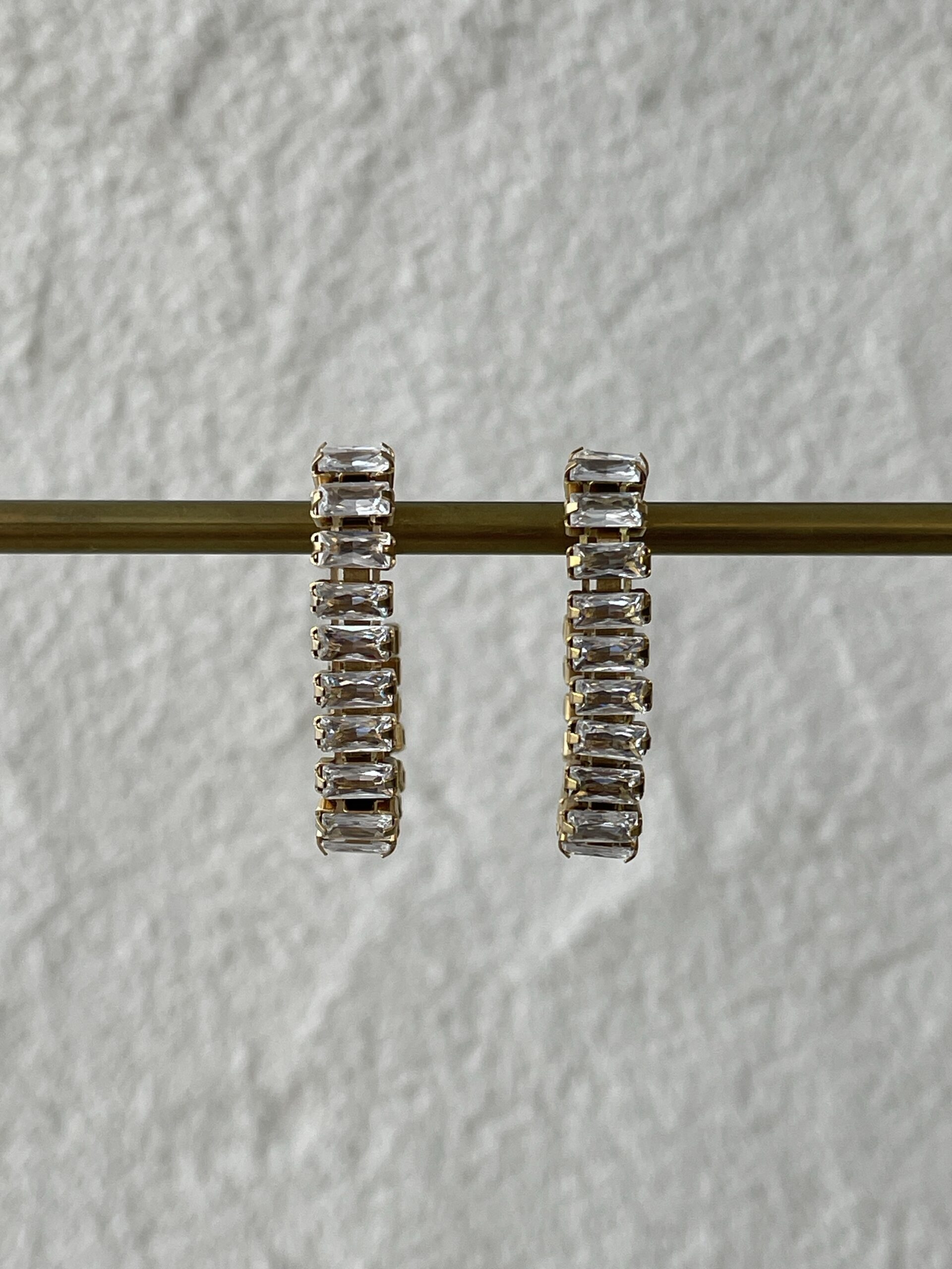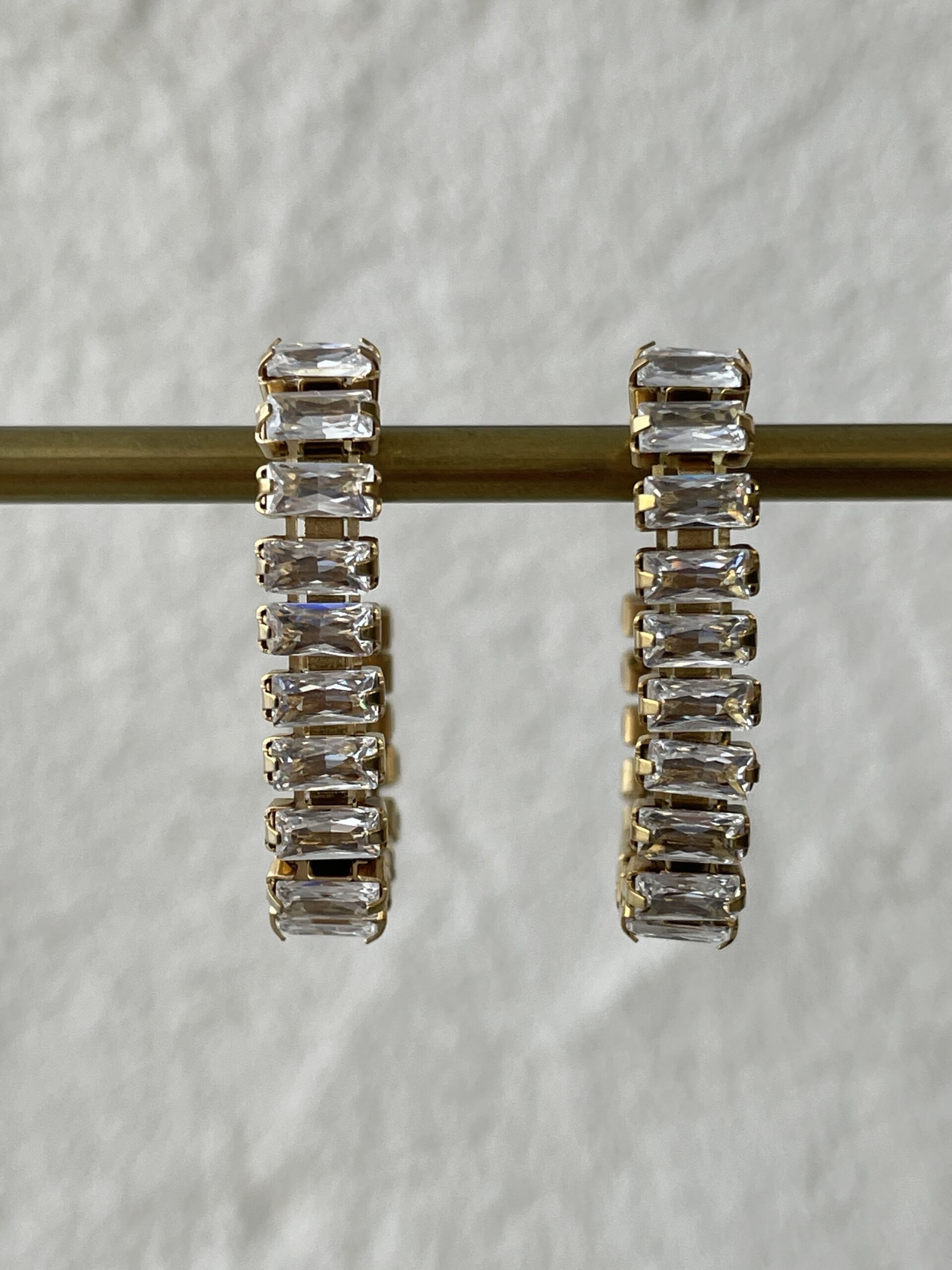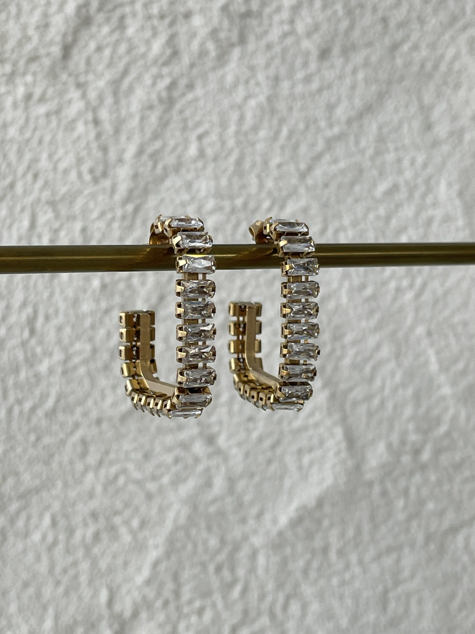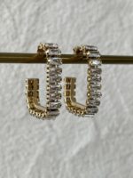 Çelik Baget Taş Dikdörtgen Gold Küpe