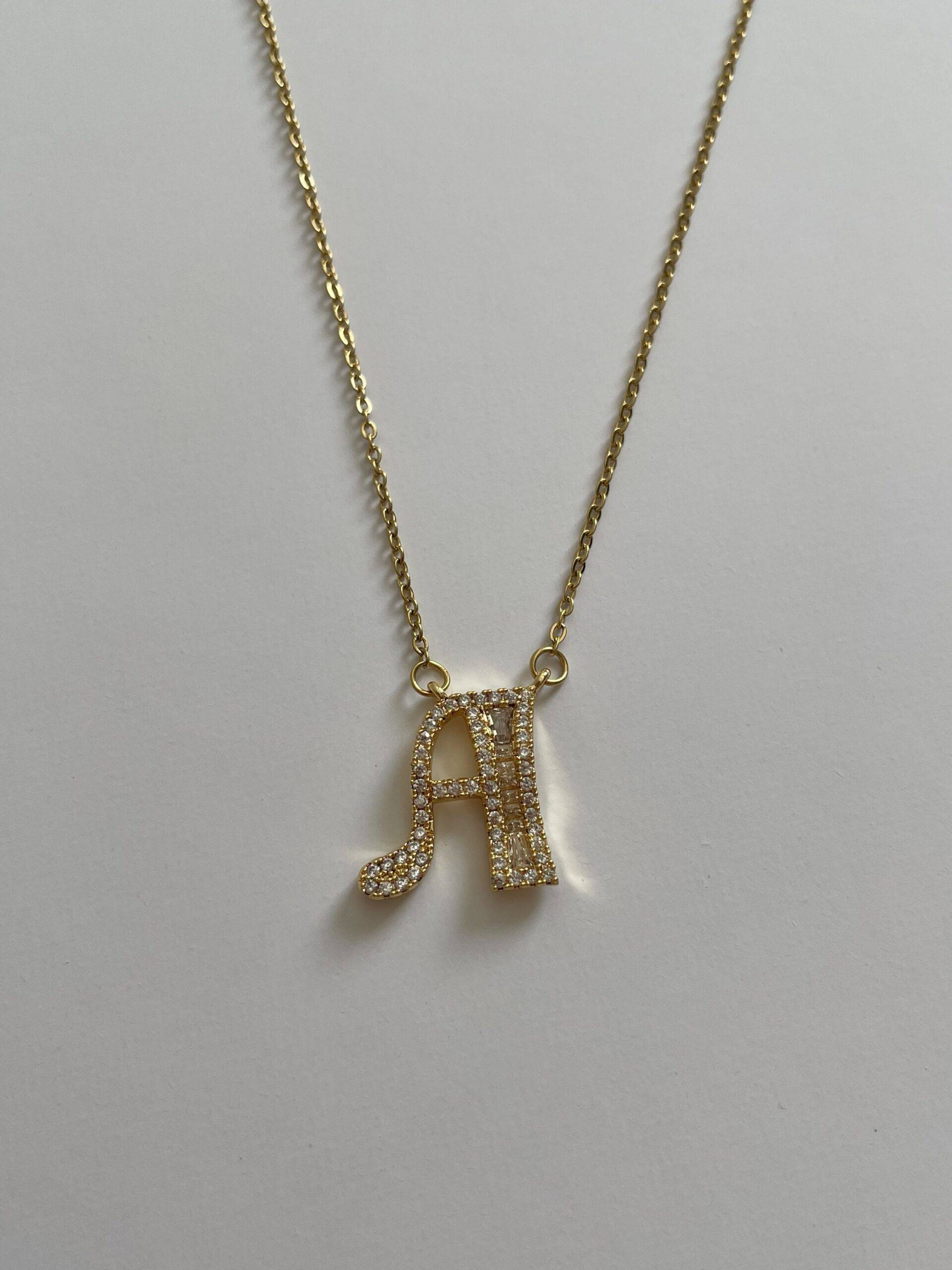 Çelik Baget Taşlı A Harf Kolye