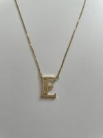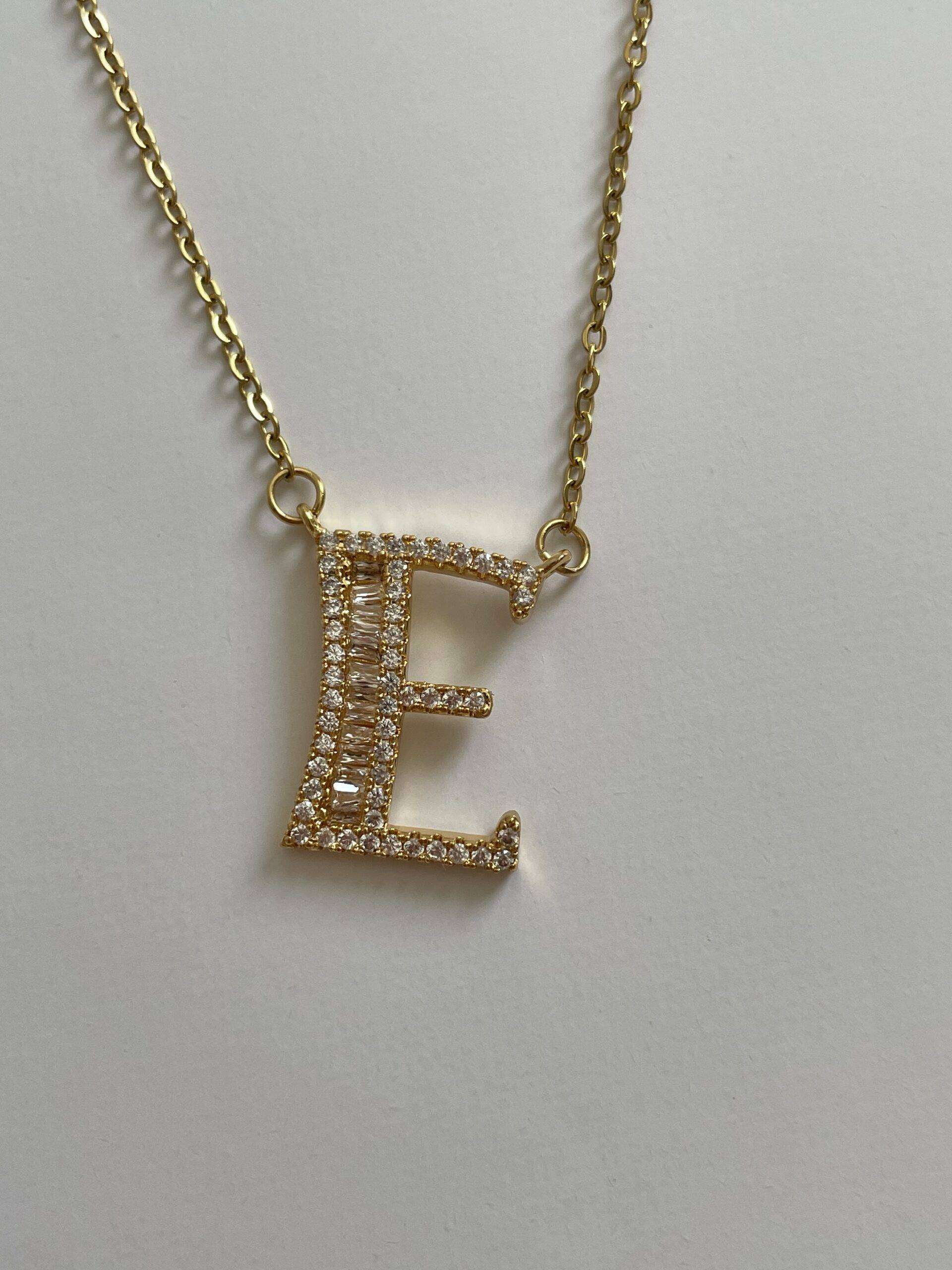 Çelik Baget Taşlı E Harf Kolye