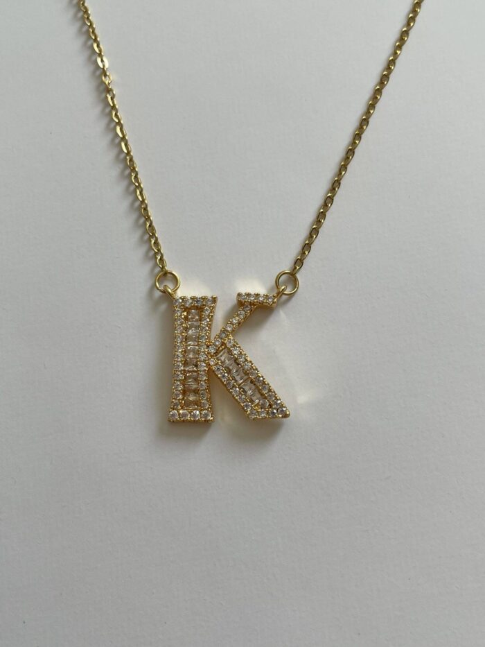 Çelik Baget Taşlı K Harf Kolye
