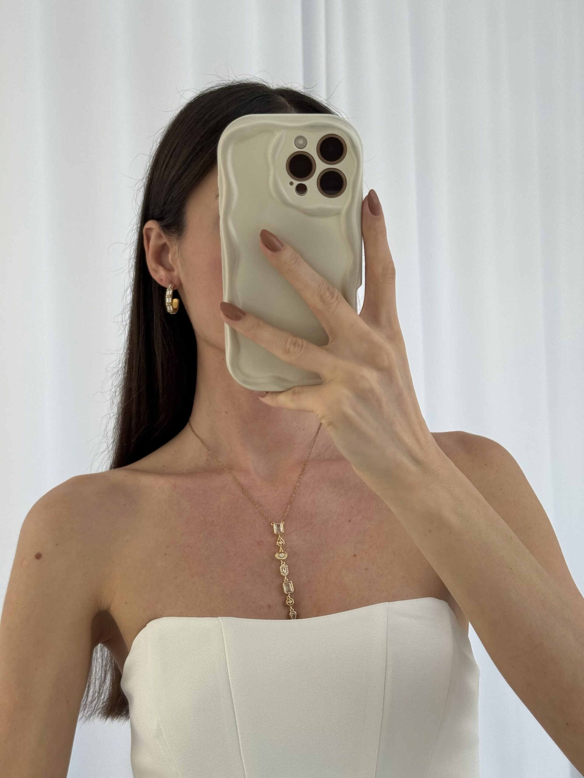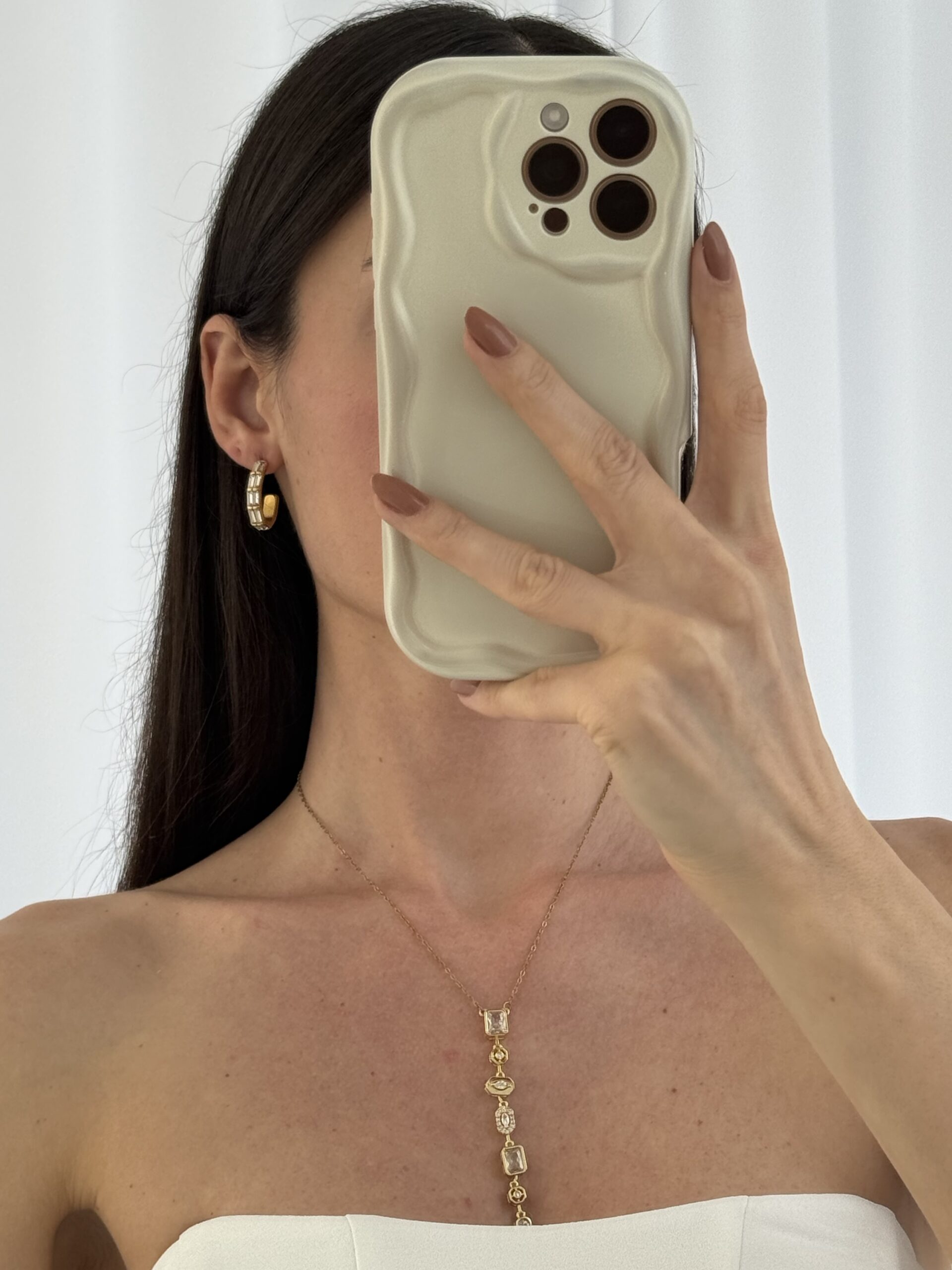 Çelik Baget Taşlı Oval Tasarım Gold Küpe