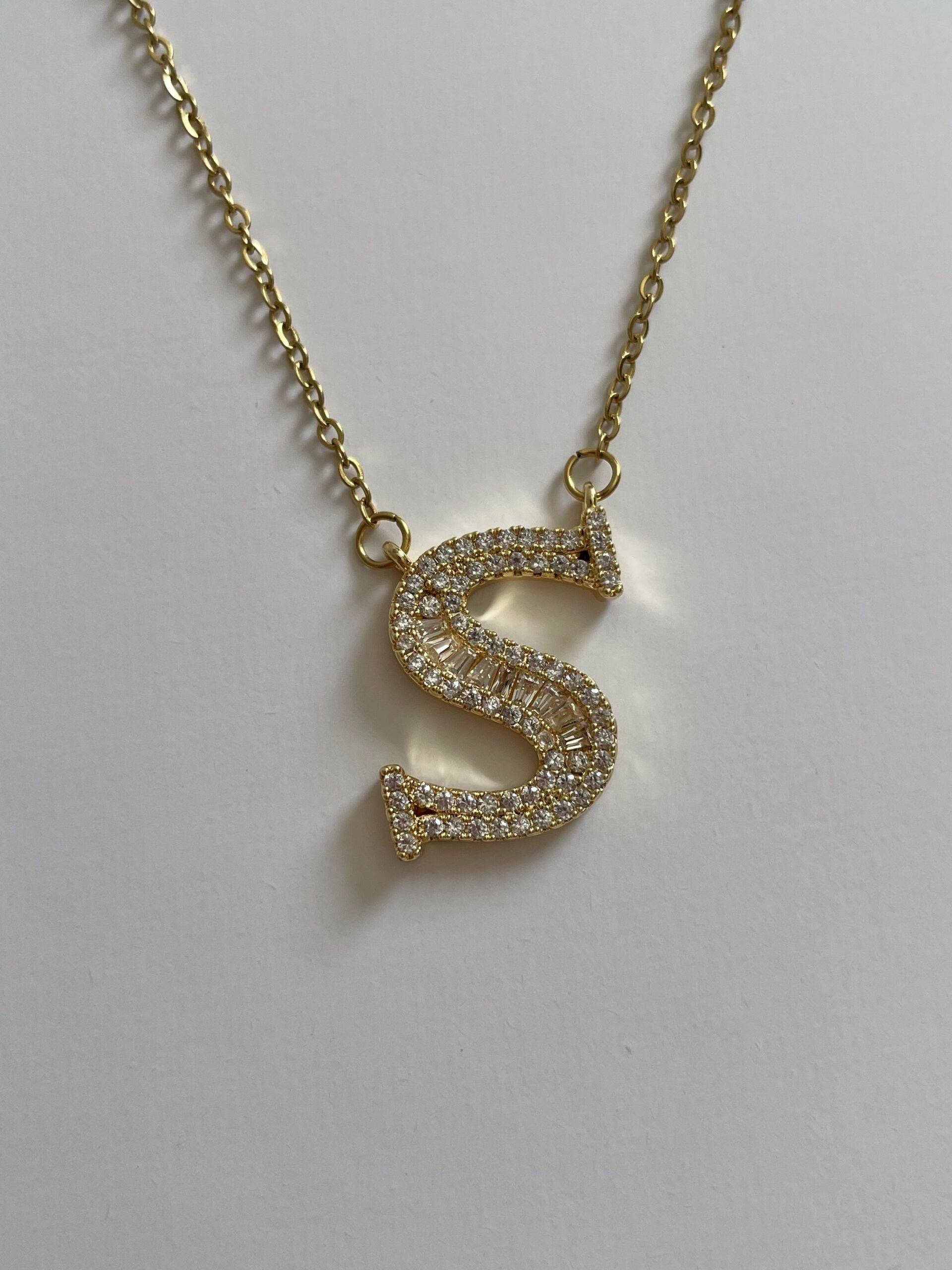 Çelik Baget Taşlı S Harf Kolye