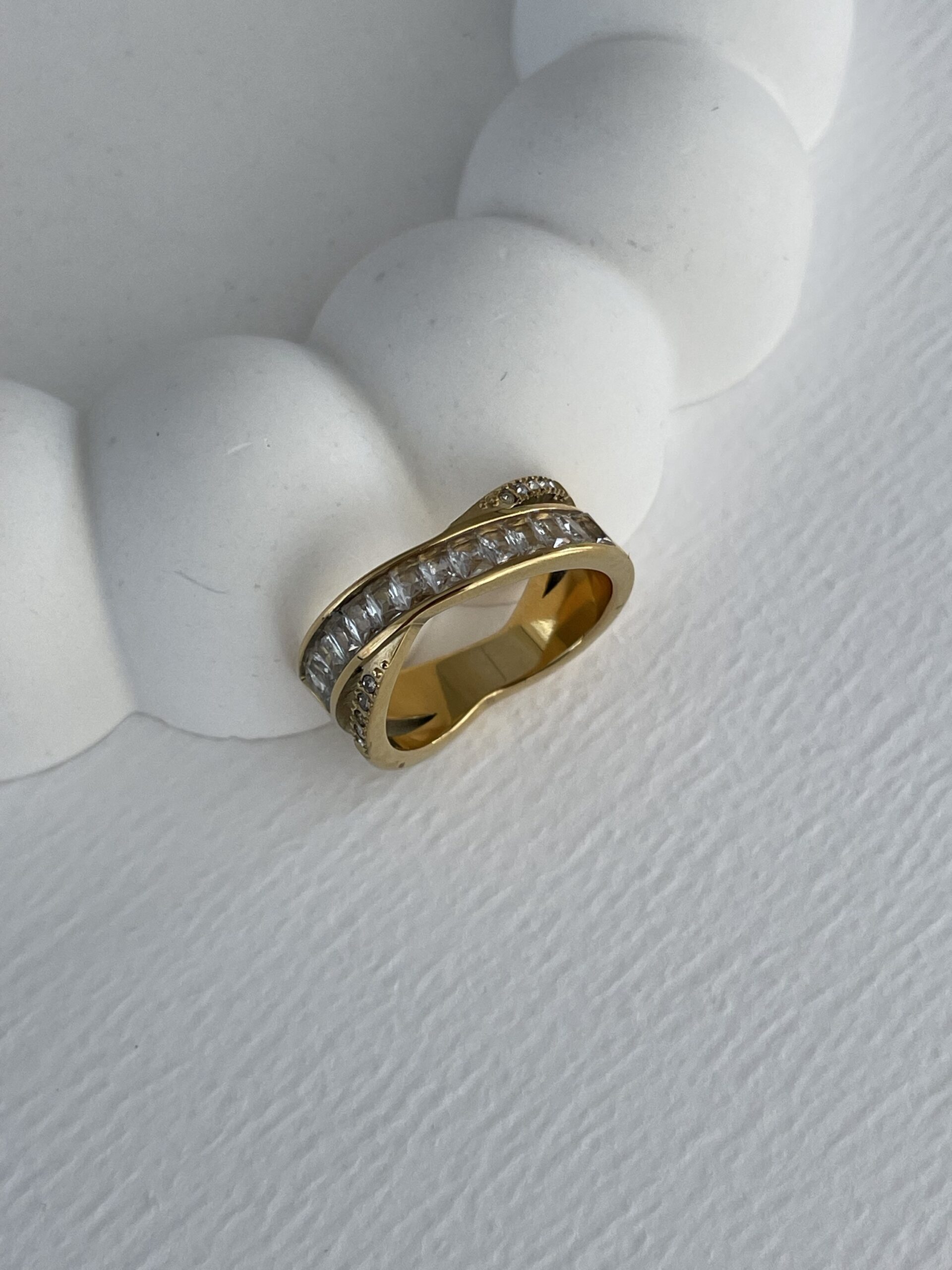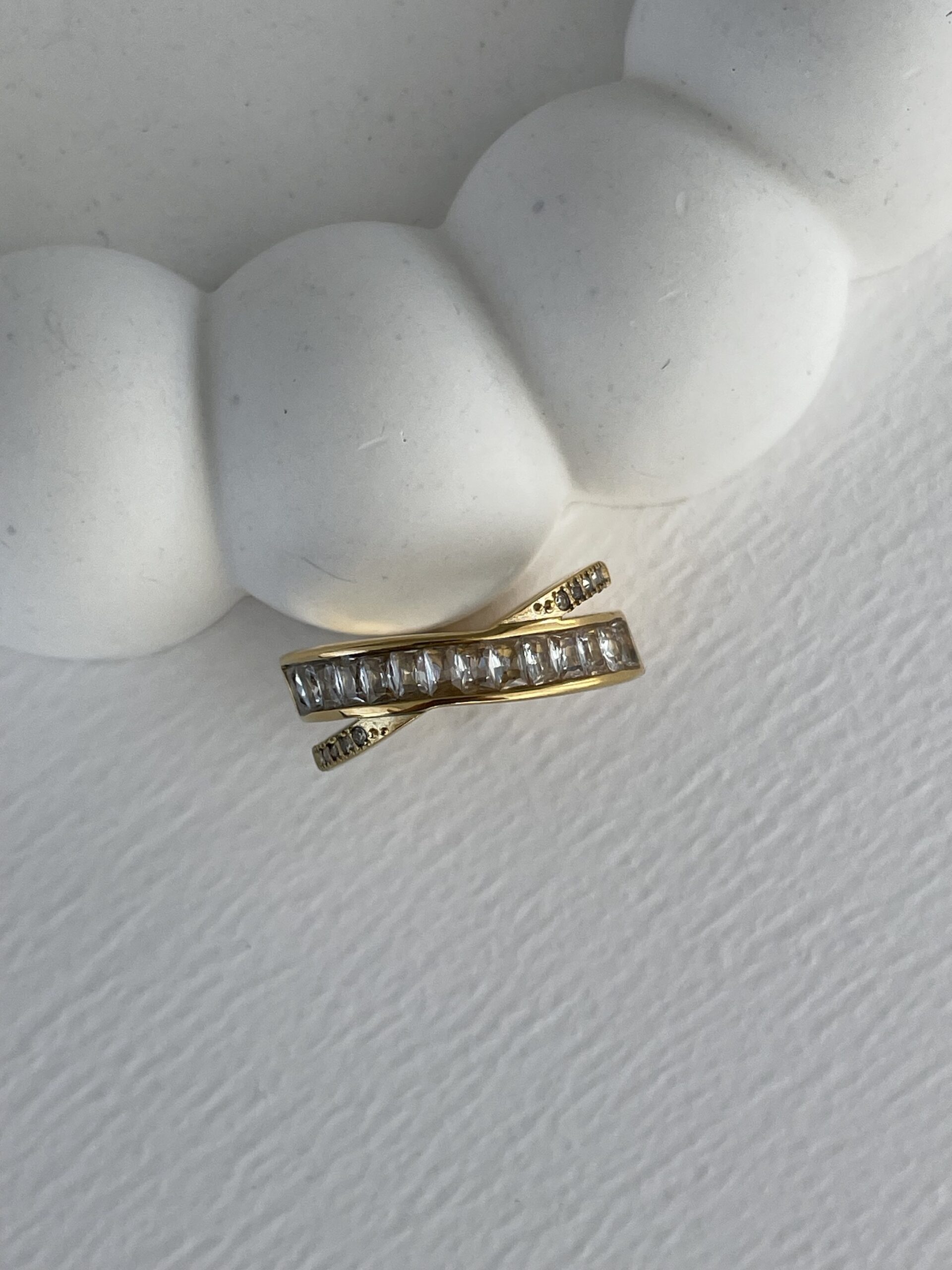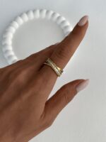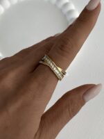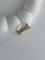 Çelik Baget Taşlı X Tasarım Gold Yüzük