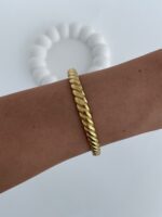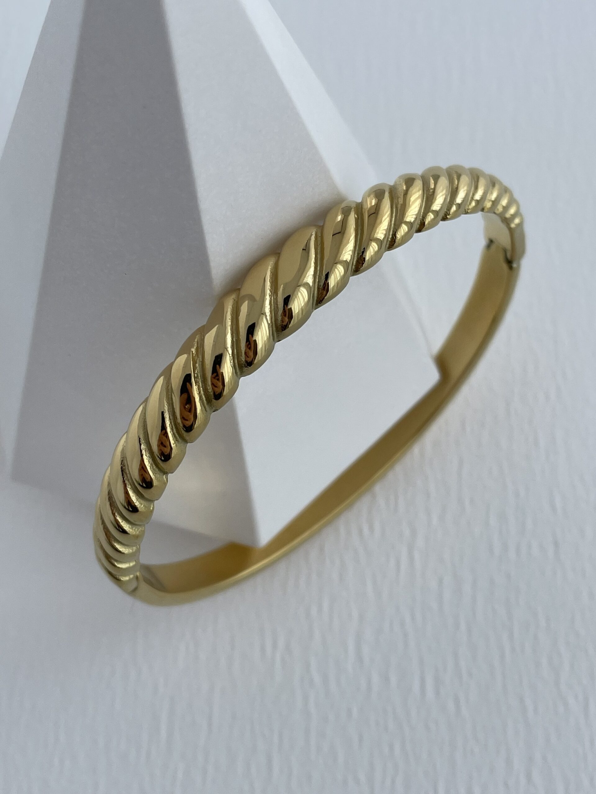 Çelik Burgu Desen Gold Kelepçe Bileklik
