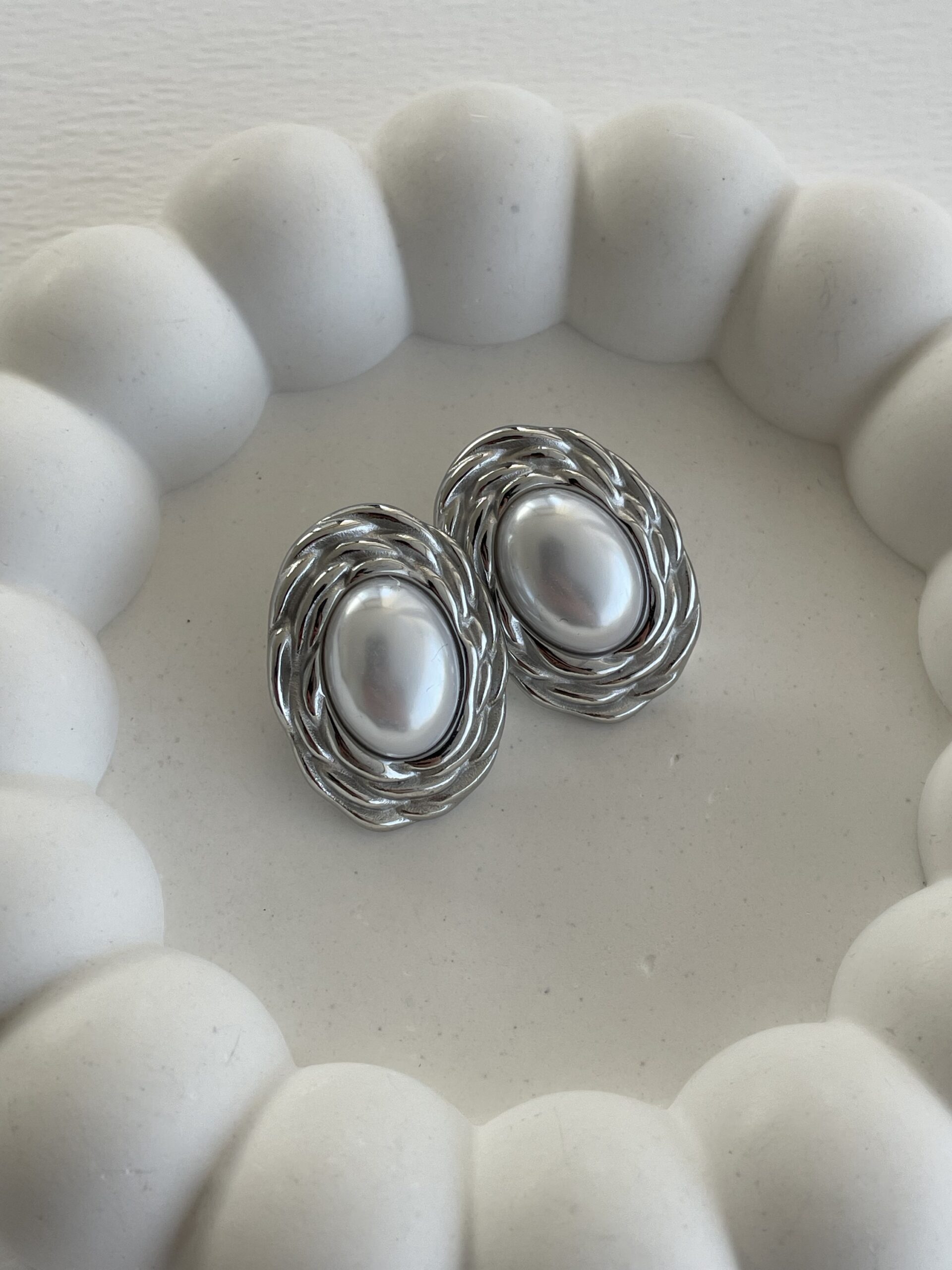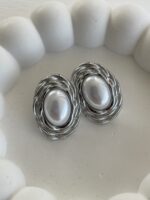 Çelik Büyük İnci Tasarım Gümüş Vintage Küpe