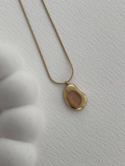 Çelik Çiçek Motif Gold Vintage Kolye 45+5cm