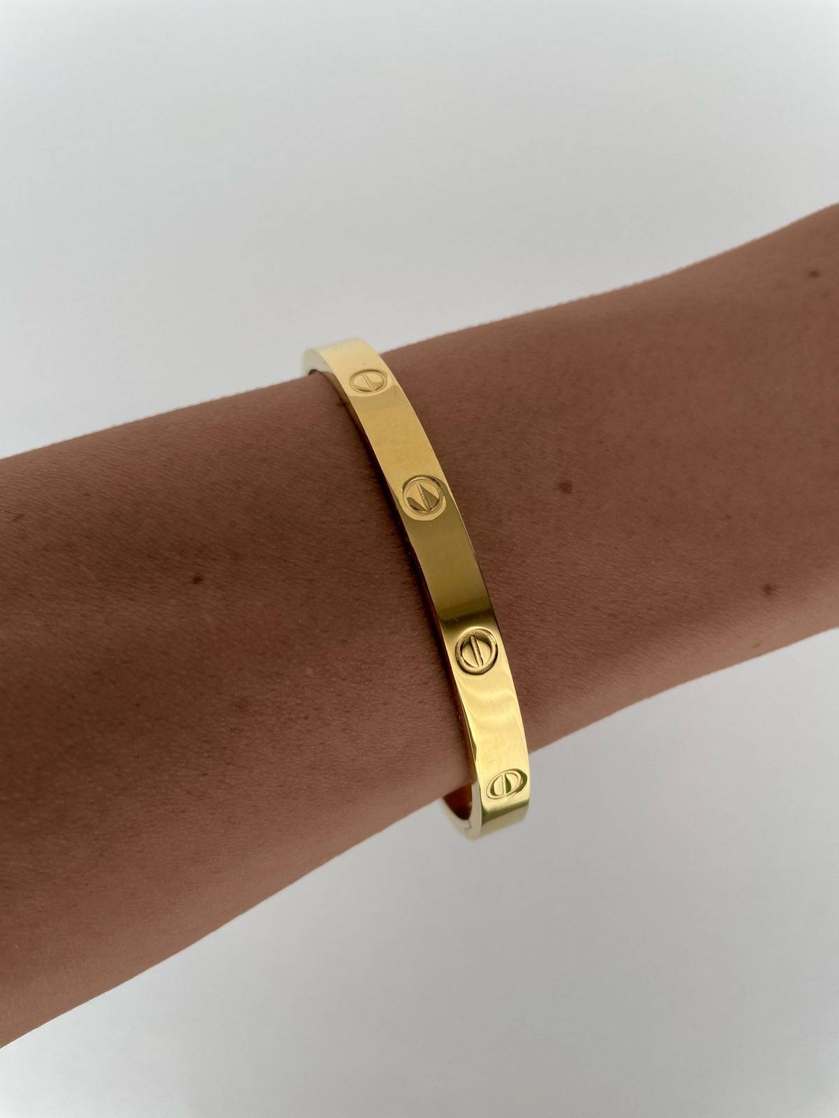 Çelik Marka İçi Yazılı Gold Kelepçe Bileklik