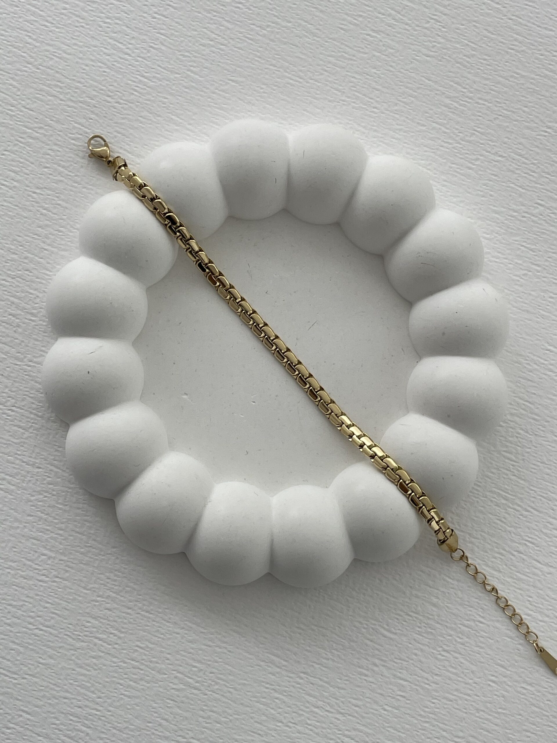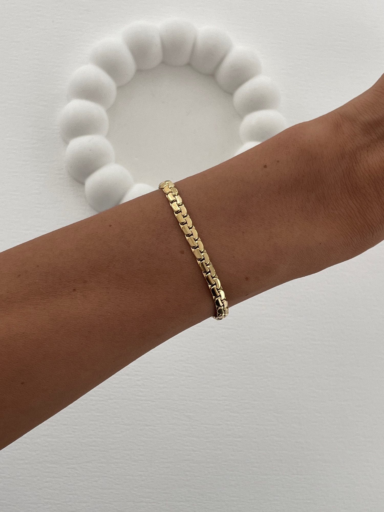Çelik Desenli Ezme Zincir Gold Bileklik