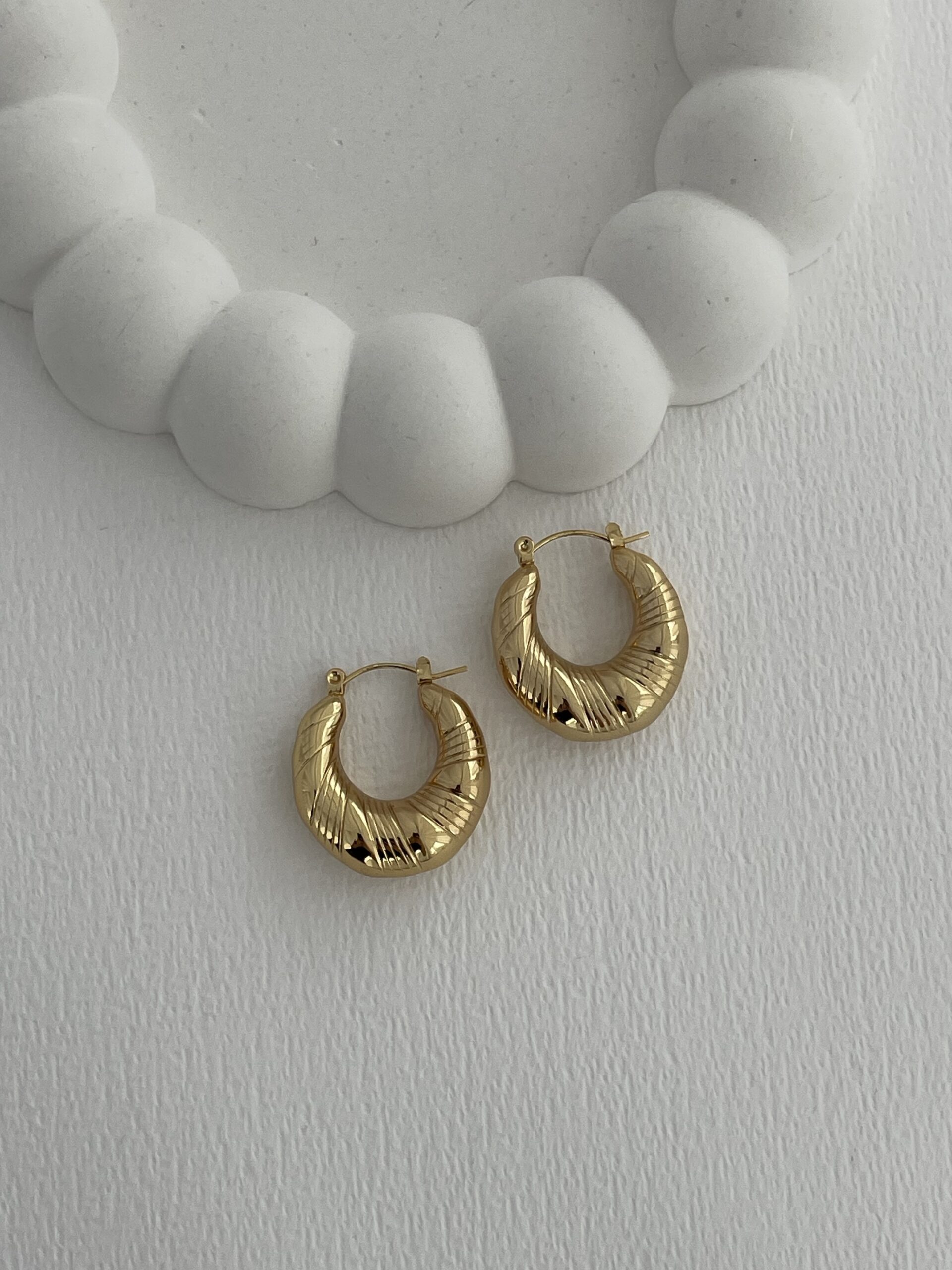 Çelik Desenli Gold Halka Küpe