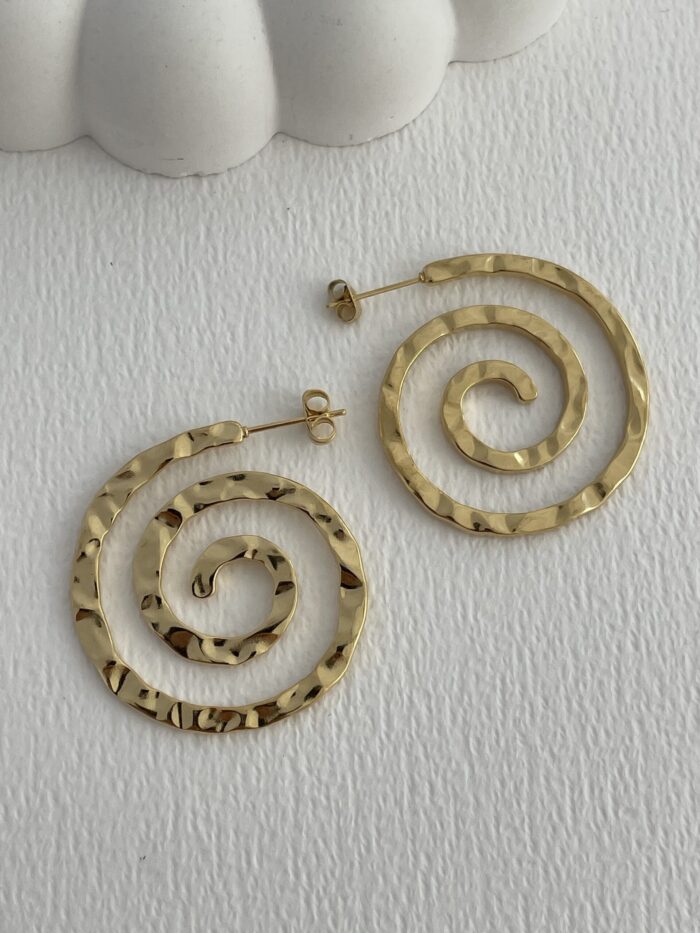 Çelik Desenli Güneş Tasarım Gold Küpe