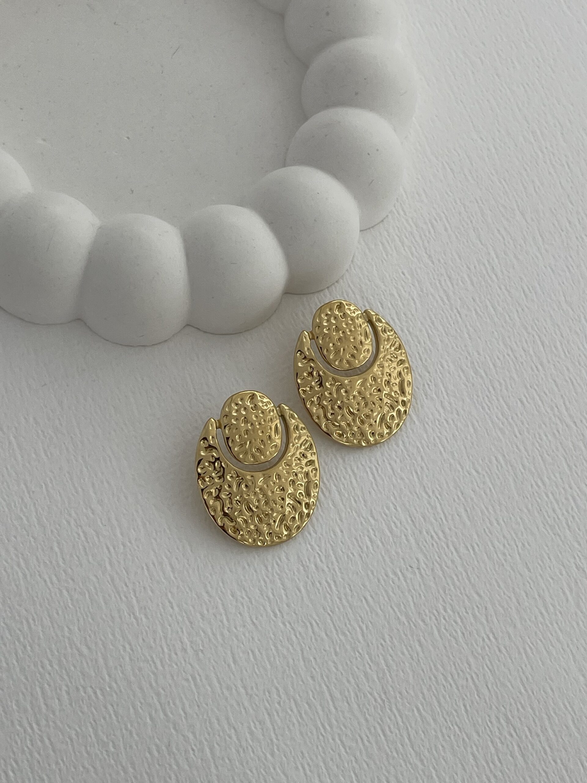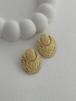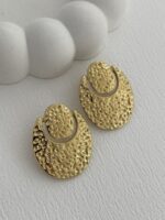 Çelik Desenli İç içe Oval Tasarım Gold Küpe