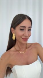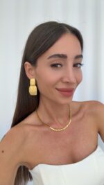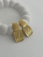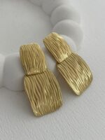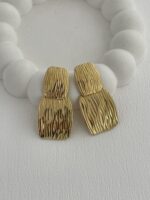 Çelik Desenli İkili Geometrik Tasarım Gold Küpe