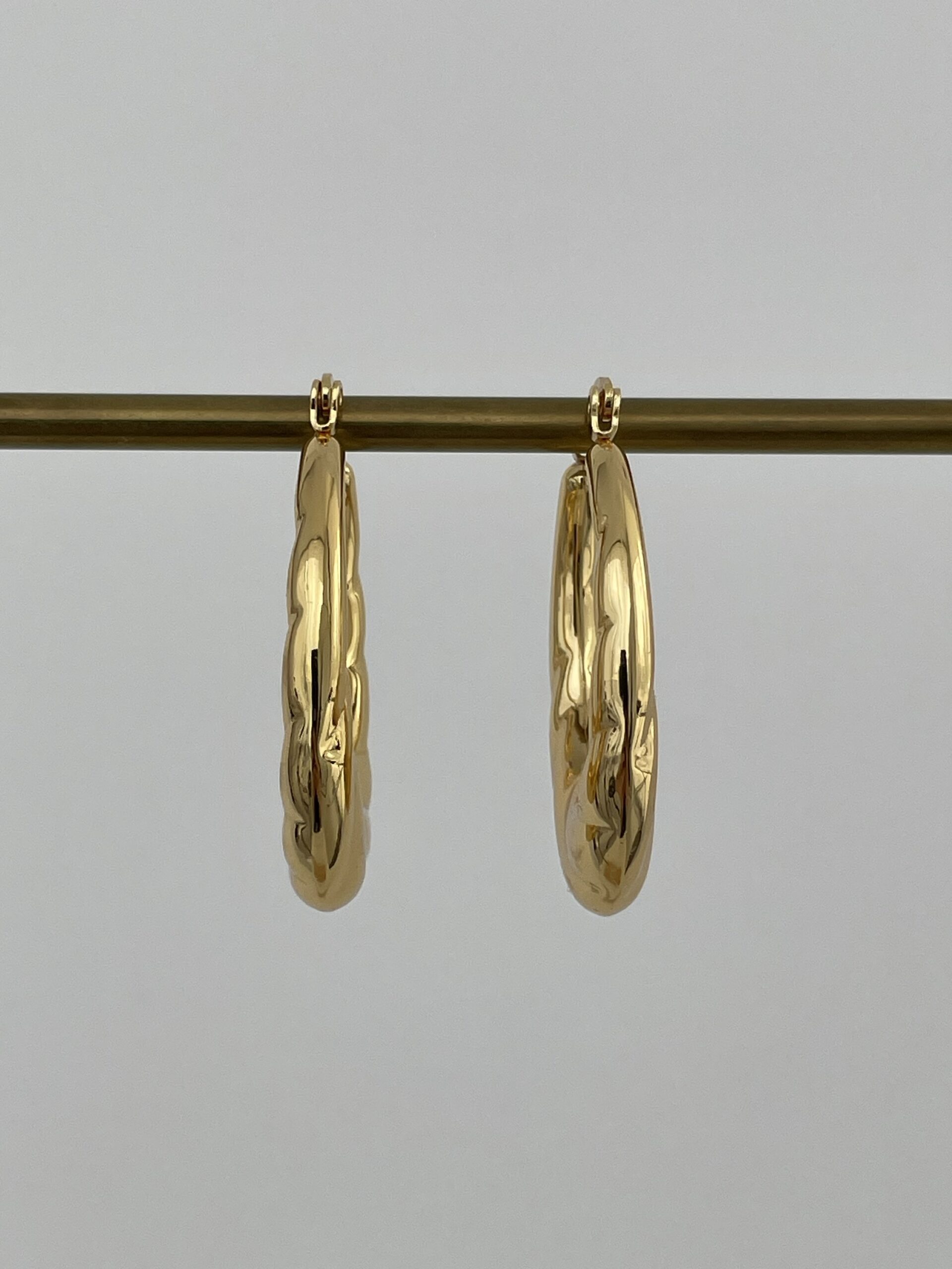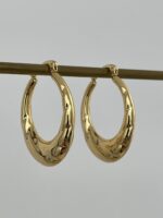 Çelik Desenli Oval Tasarım Gold Halka Küpe