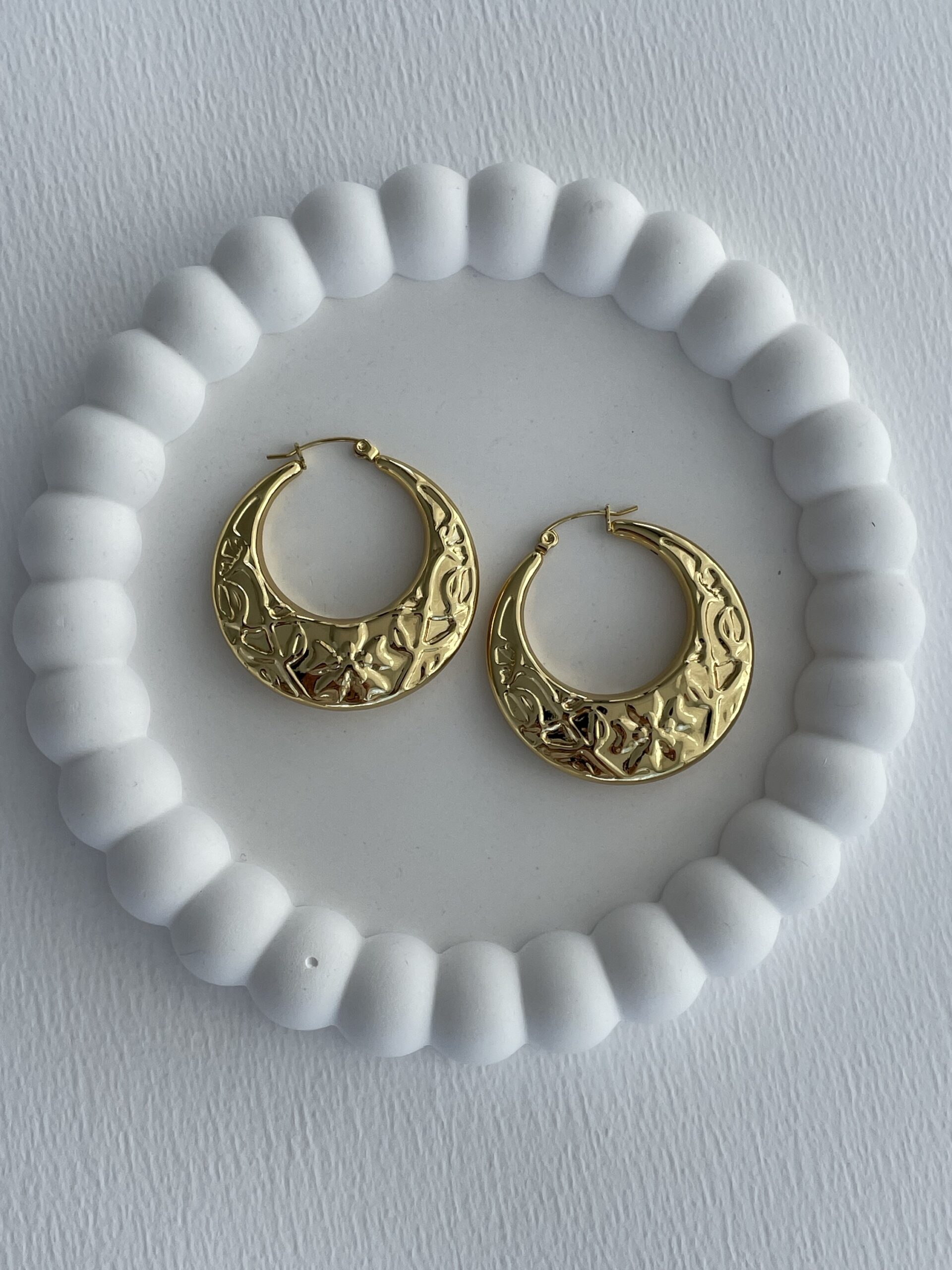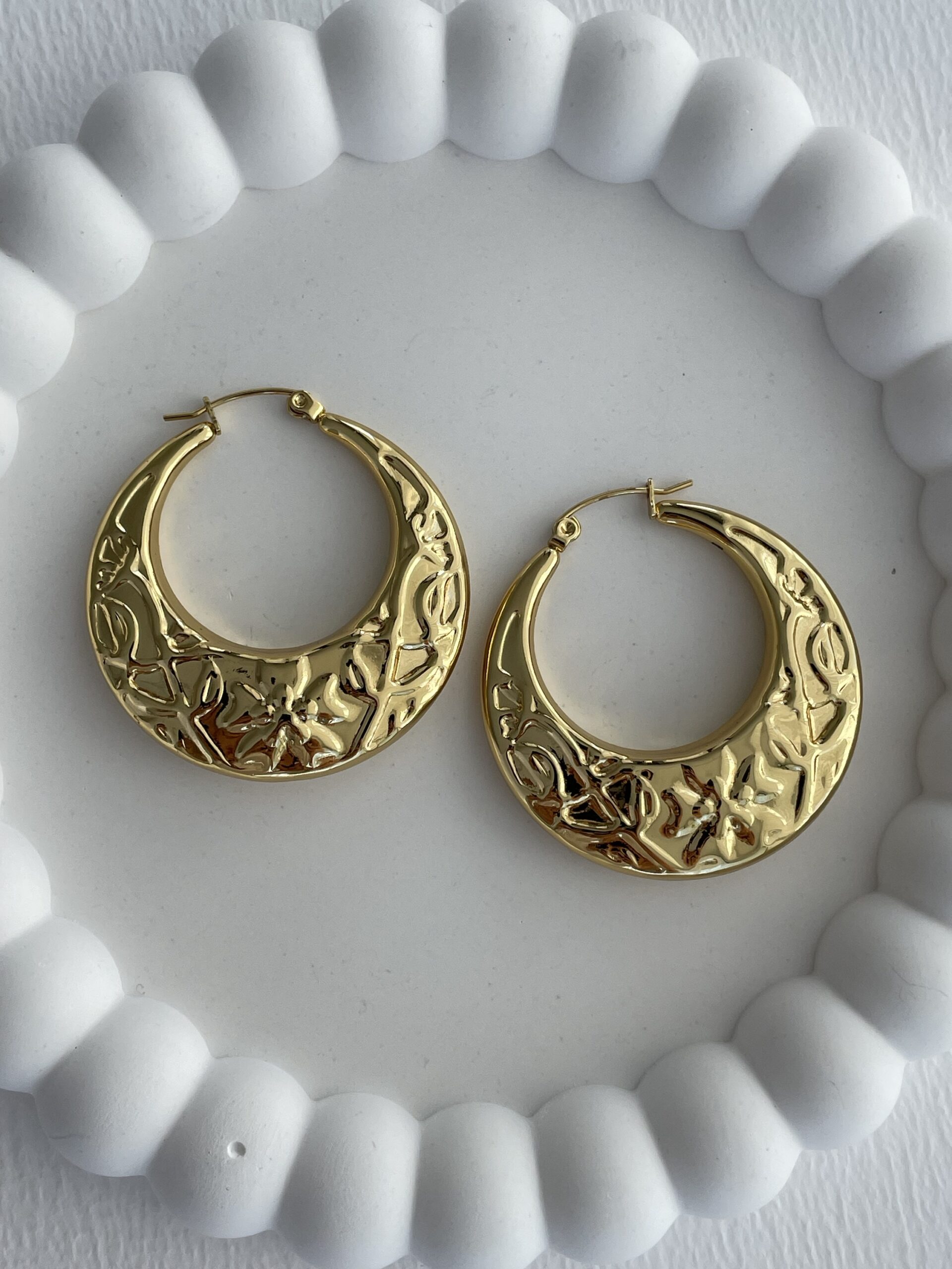 Çelik Desenli Yarım Ay Tasarım Gold Halka Küpe
