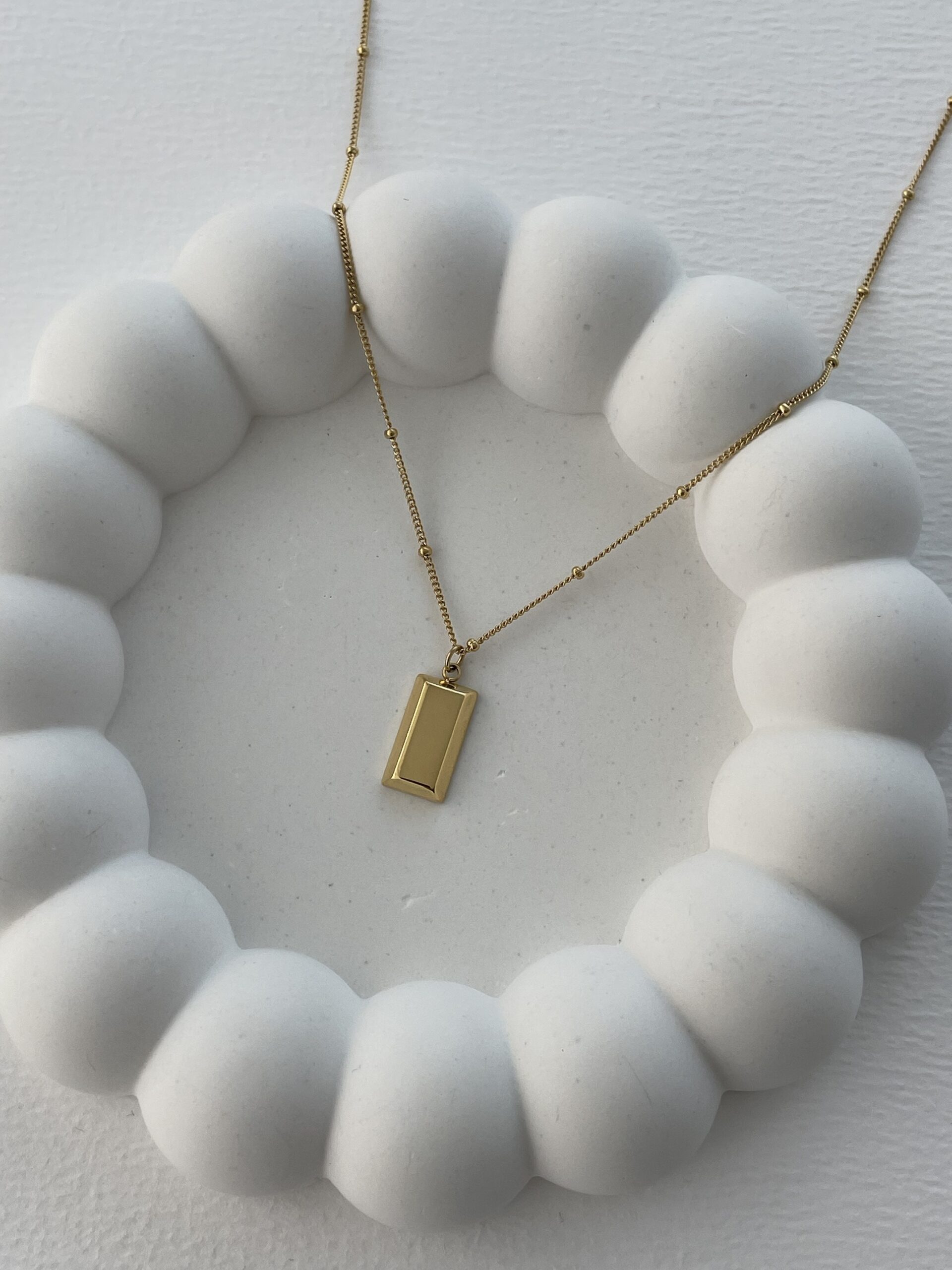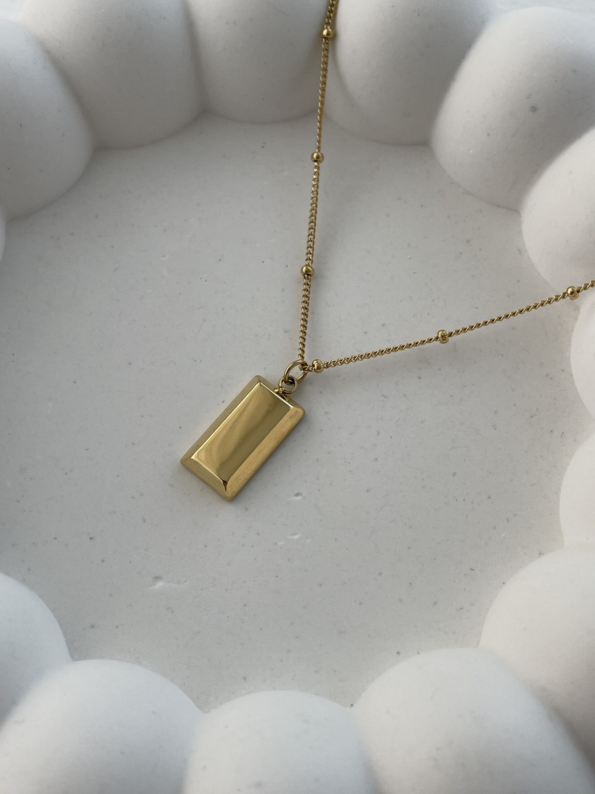 Çelik Dikdörtgen Tasarım Gold Plaka Kolye