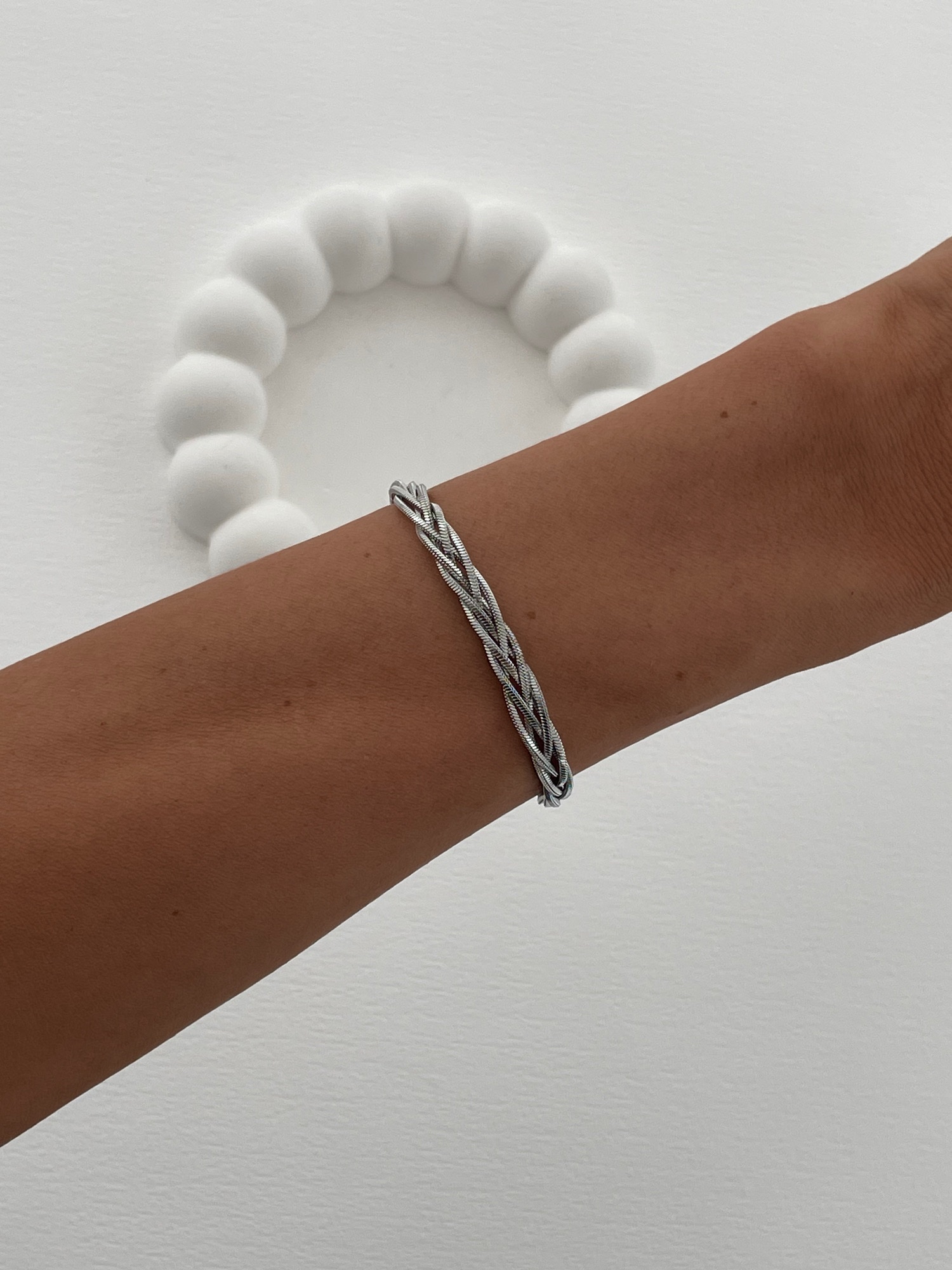 Çelik Dörtlü Burgu Tasarım Gümüş Bileklik