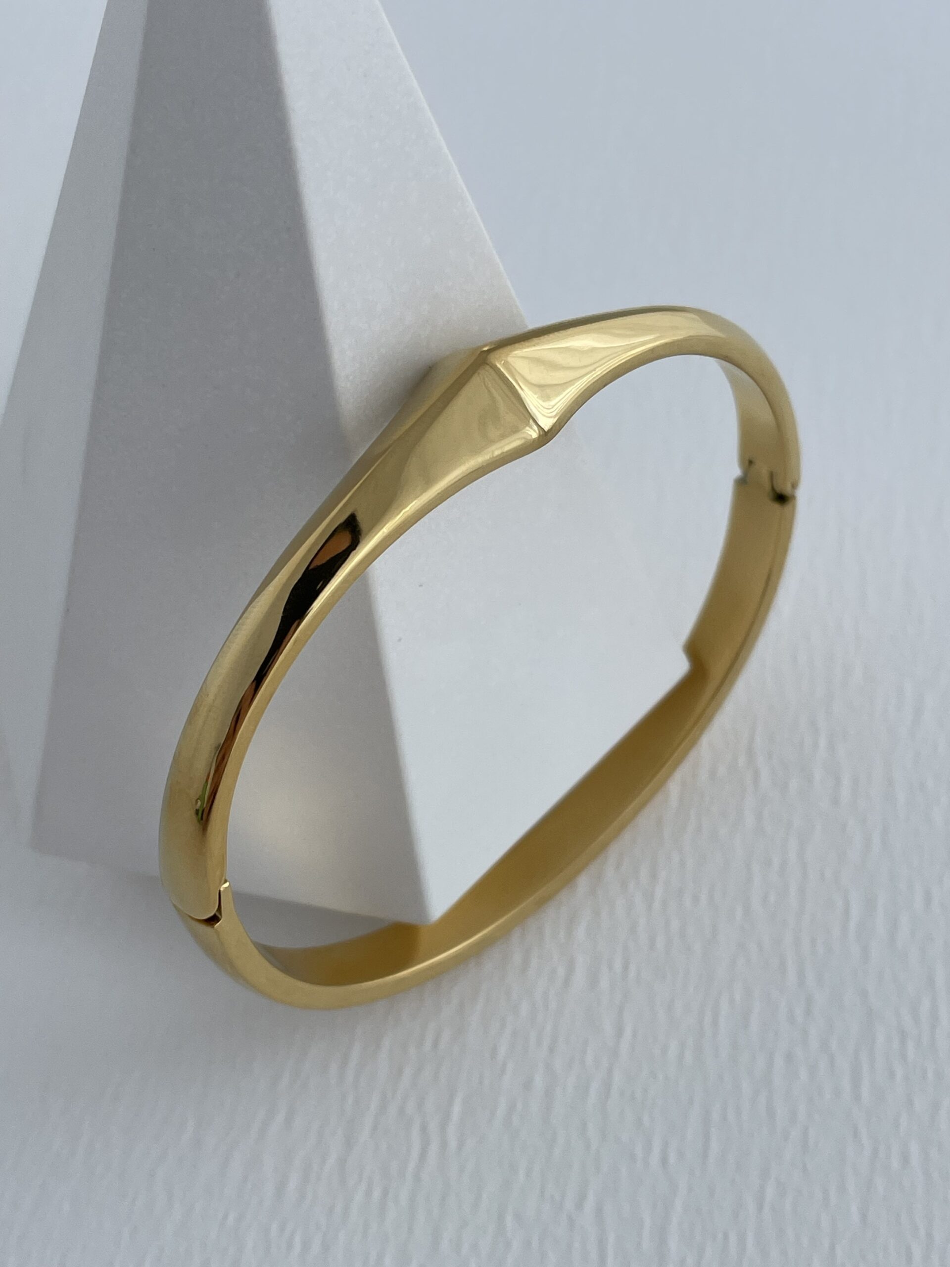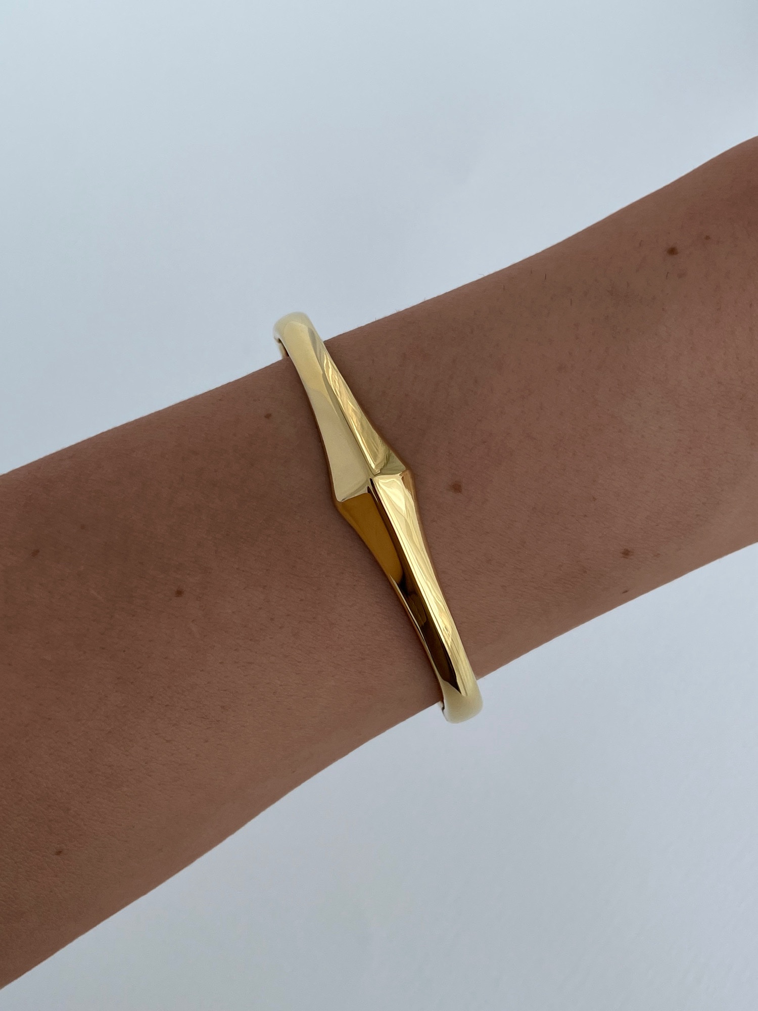 Çelik Geometrik Desen Gold Kelepçe Bileklik