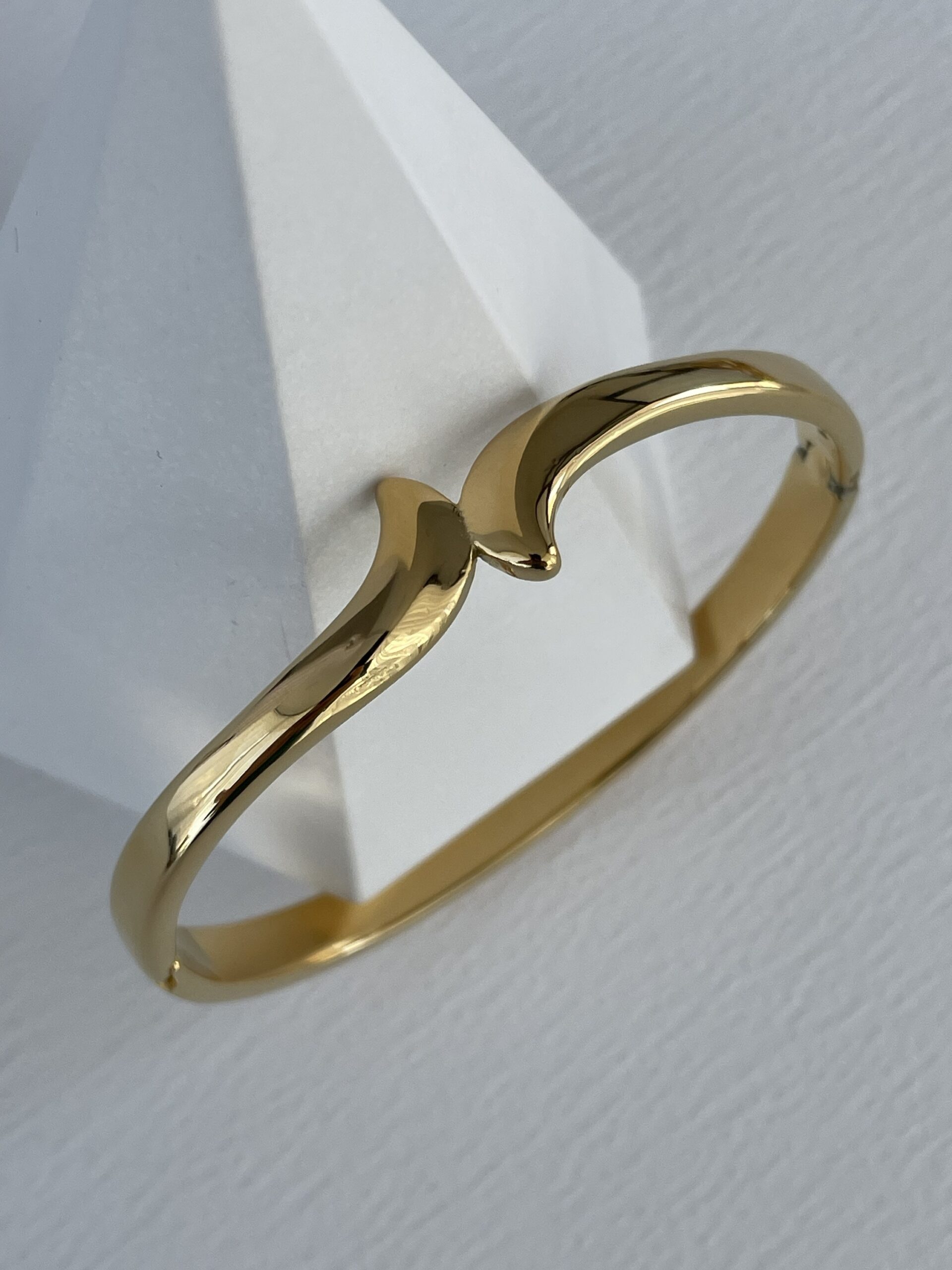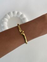 Çelik Geometrik Desen Gold Kelepçe Bileklik