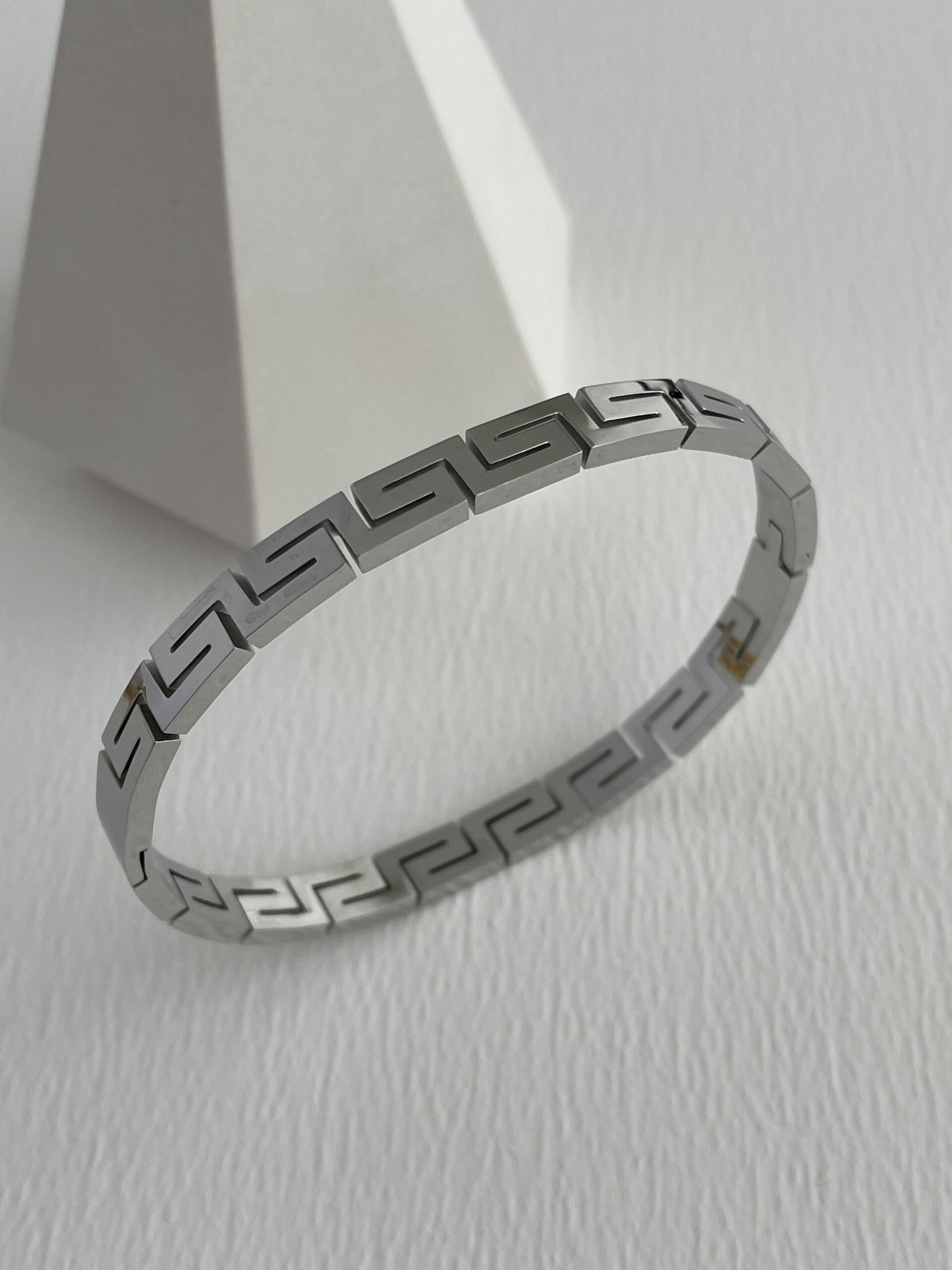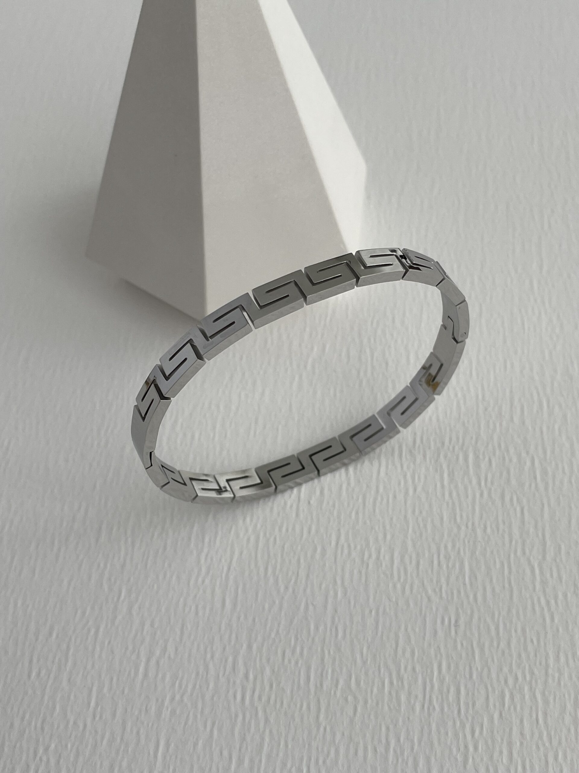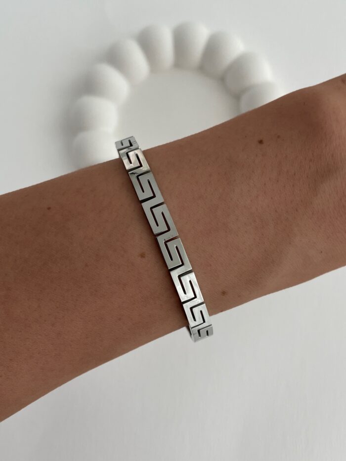 Çelik Geometrik Desen Gümüş Marka Kelepçe Bileklik