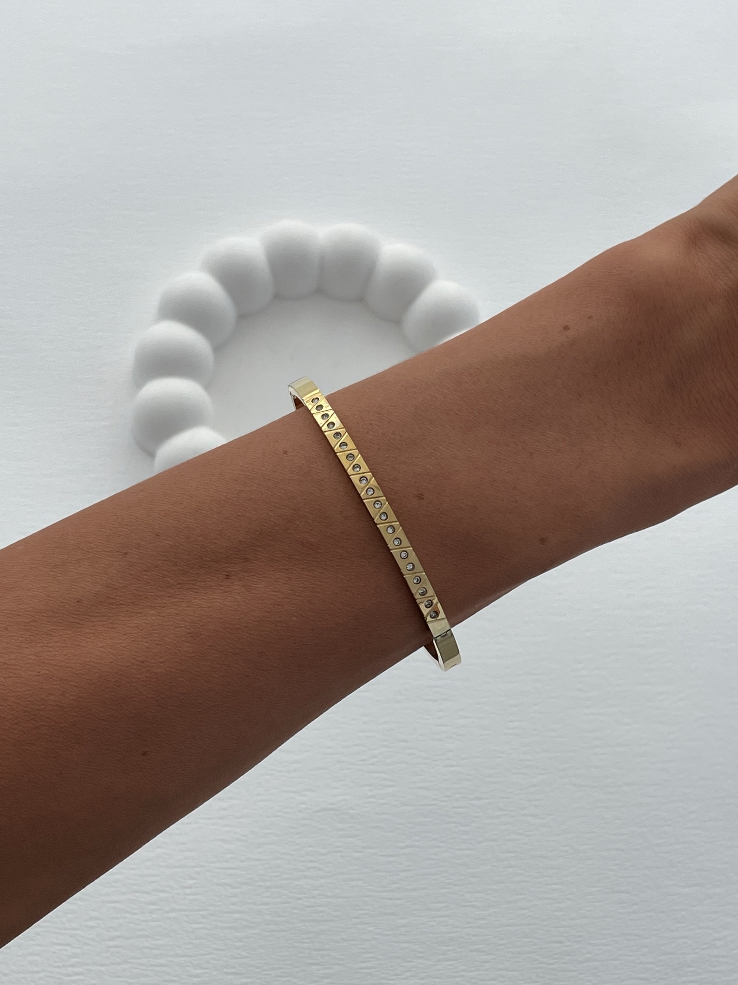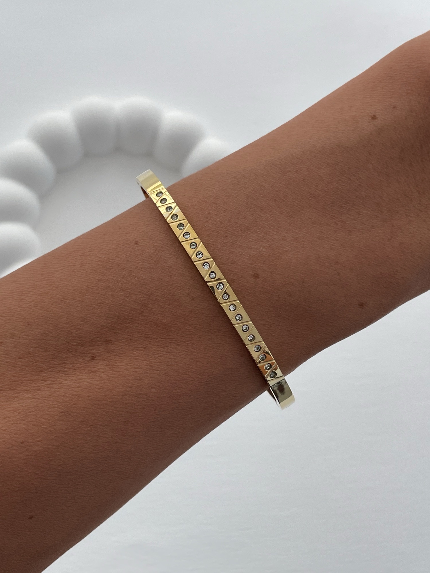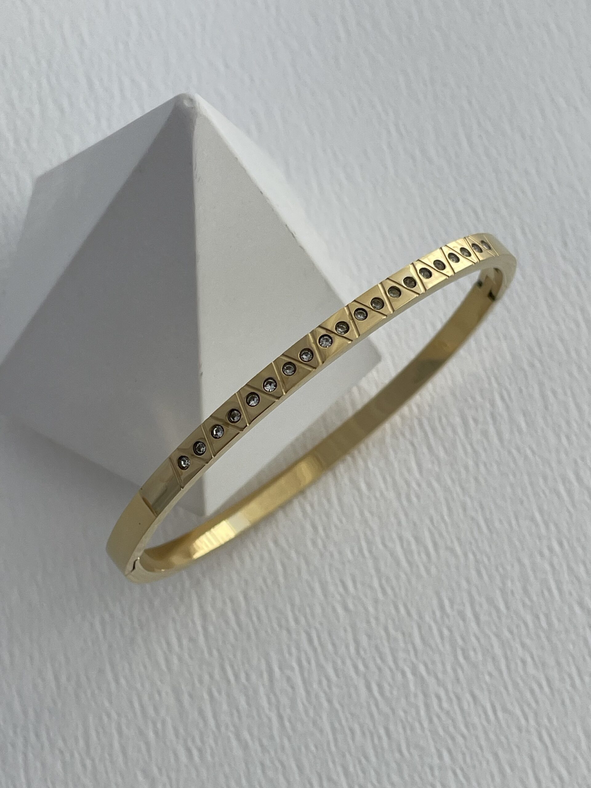 Çelik Geometrik Desen Zirkon Taşlı Gold Kelepçe Bileklik