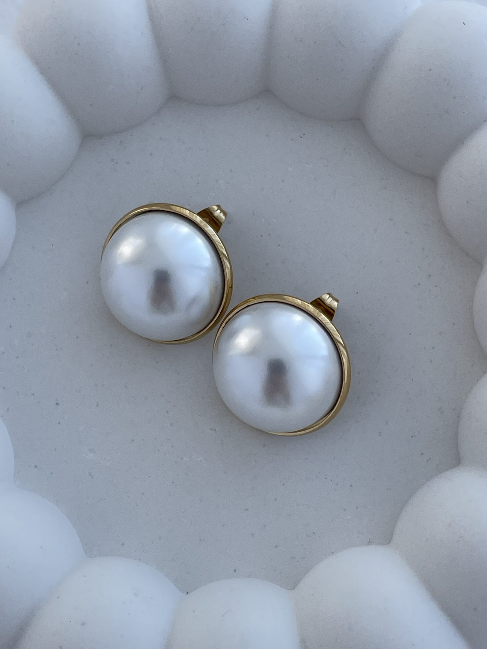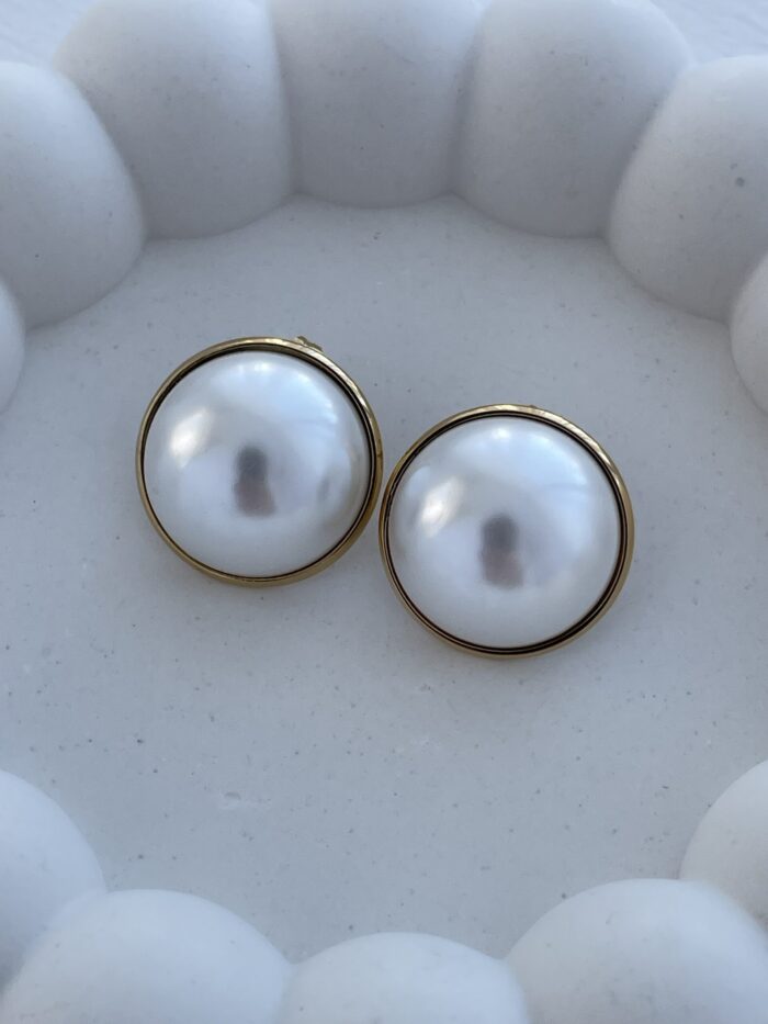 Çelik Geometrik Tasarım Gold İnci Küpe